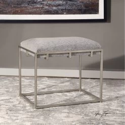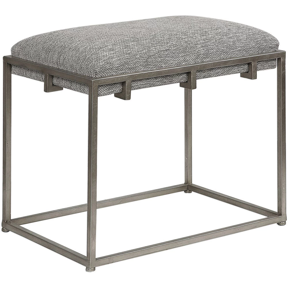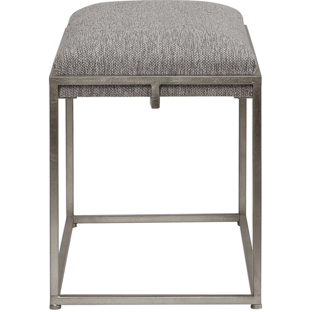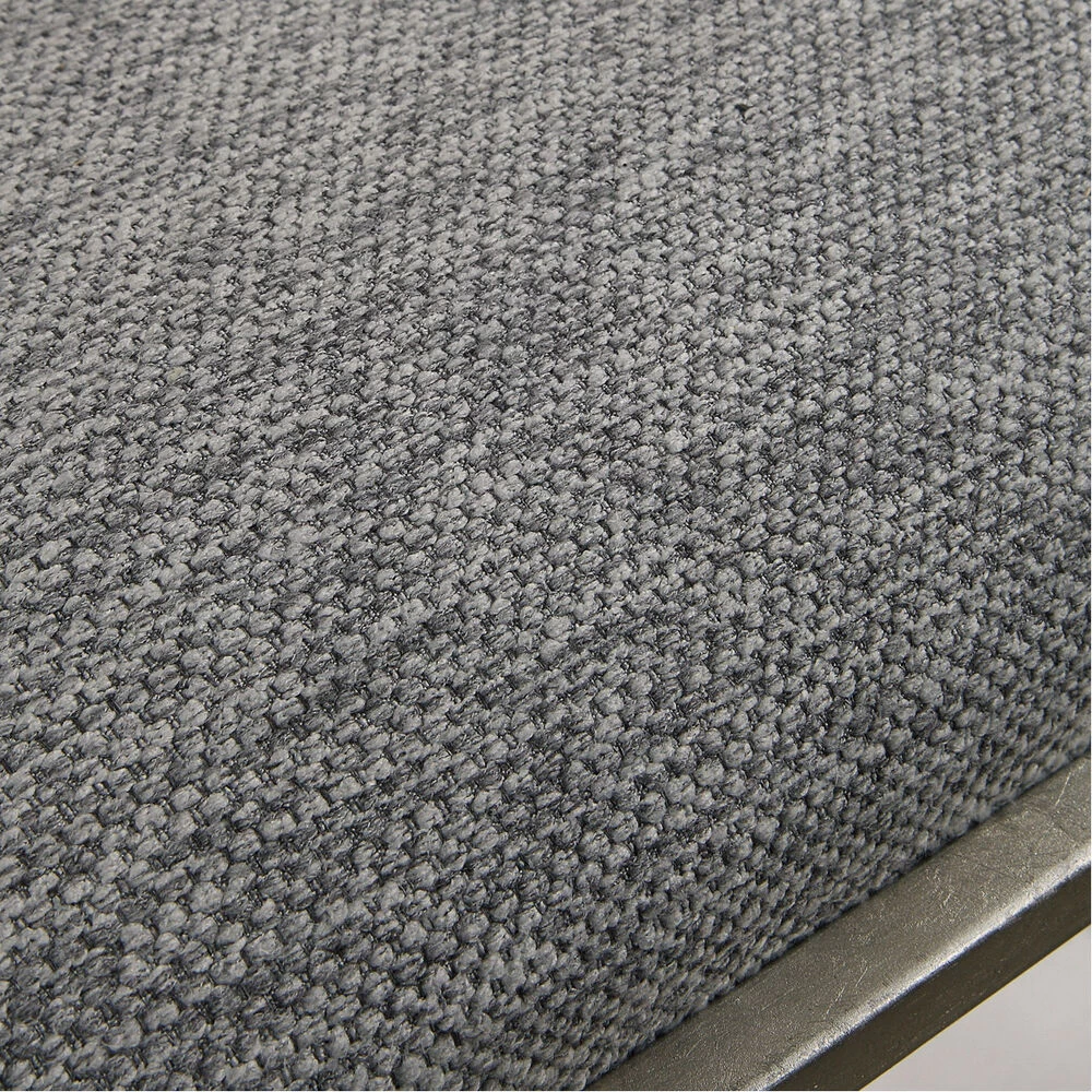Welded Iron Frame Finished In A Lightly Antiqued Metallic Silver Leaf, Cradling A Hand Upholstered Plush Seat In A Woven Ash Gray Polyester.