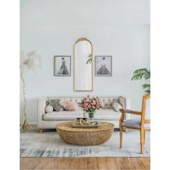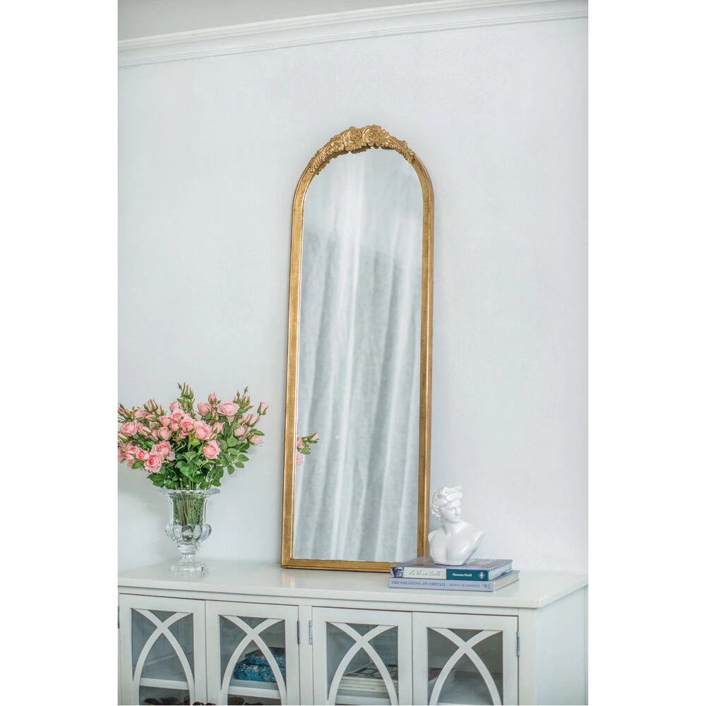 Create a level of sophistication to any dressing room or hallway with the Etienne Wood Floor Mirror. The sleek design of the frame allows the floral crest of the frame, creating a elegant finish. Leaned against the wall in a Parisian living room or in a contemporary dressing room, the Etienne Wood Floor Mirror completes the room.