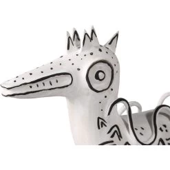 Artist Xiang Yang, a brilliant ceramist, took a walk on the wild side when he created Eunice the Duck. Made of porcelain in a washed-white finish with black whimsical details painted by the artist, the haunting vessel will create a stir not unlike Picasso’s work did during his ceramics period as he experimented in the South of France.