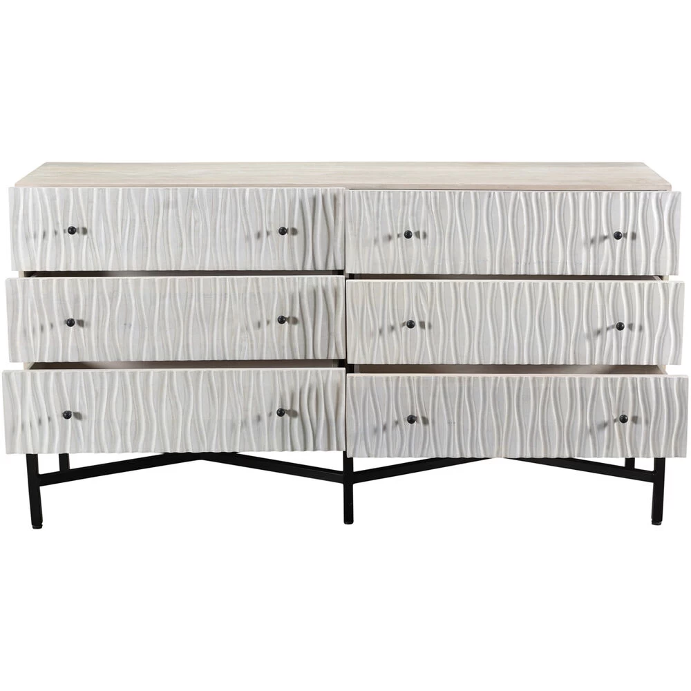 The contemporary designed Faceout dresser is constructed with solid mango wood with the intention to last. The whitewashed finish creates a rustic effect, while its powder-coated iron stand provides a modern feel to any bedroom space. The six spacious drawers give practicality with ample amount of space to store all your essentials.