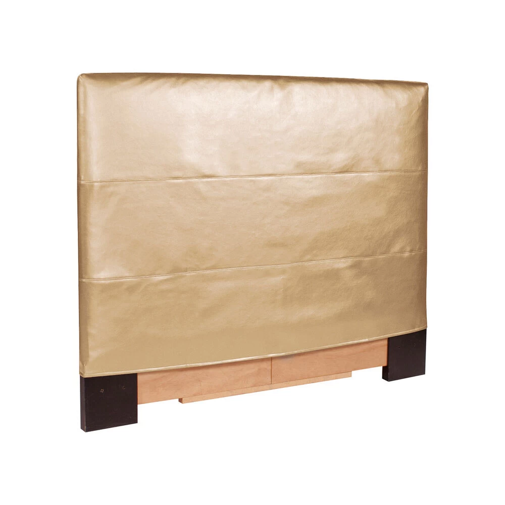The Slipcovered Headboard is constructed with a sturdy wood frame that is padded for maximum comfort, making it solid yet cozy. But what makes it truly unique is the removable tailored slipcover! Change colors on a whim or with the seasons or simply because it is time for a wash. Additional covers are available so you can keep a few on hand. Because it is slipcovered, we were able to construct this piece so that it comes apart and ships via FedEx or UPS and is easy to move from house to house. Perfect for renters or college students! This cover features a rich grain faux leather and metallic gold color. Fits most standard bed frames. Metal bed frame NOT included.