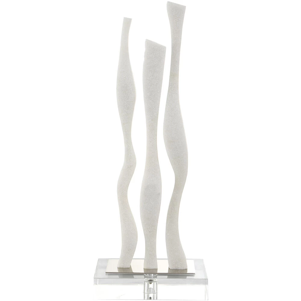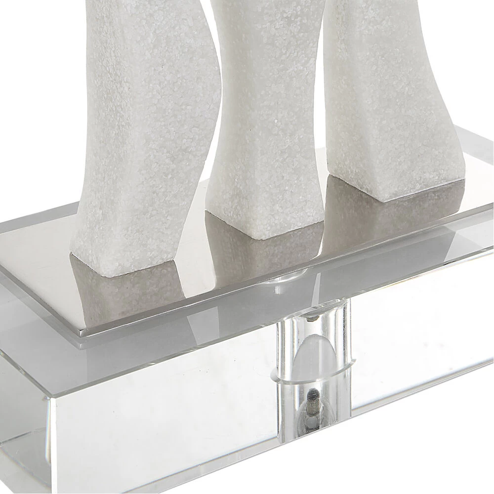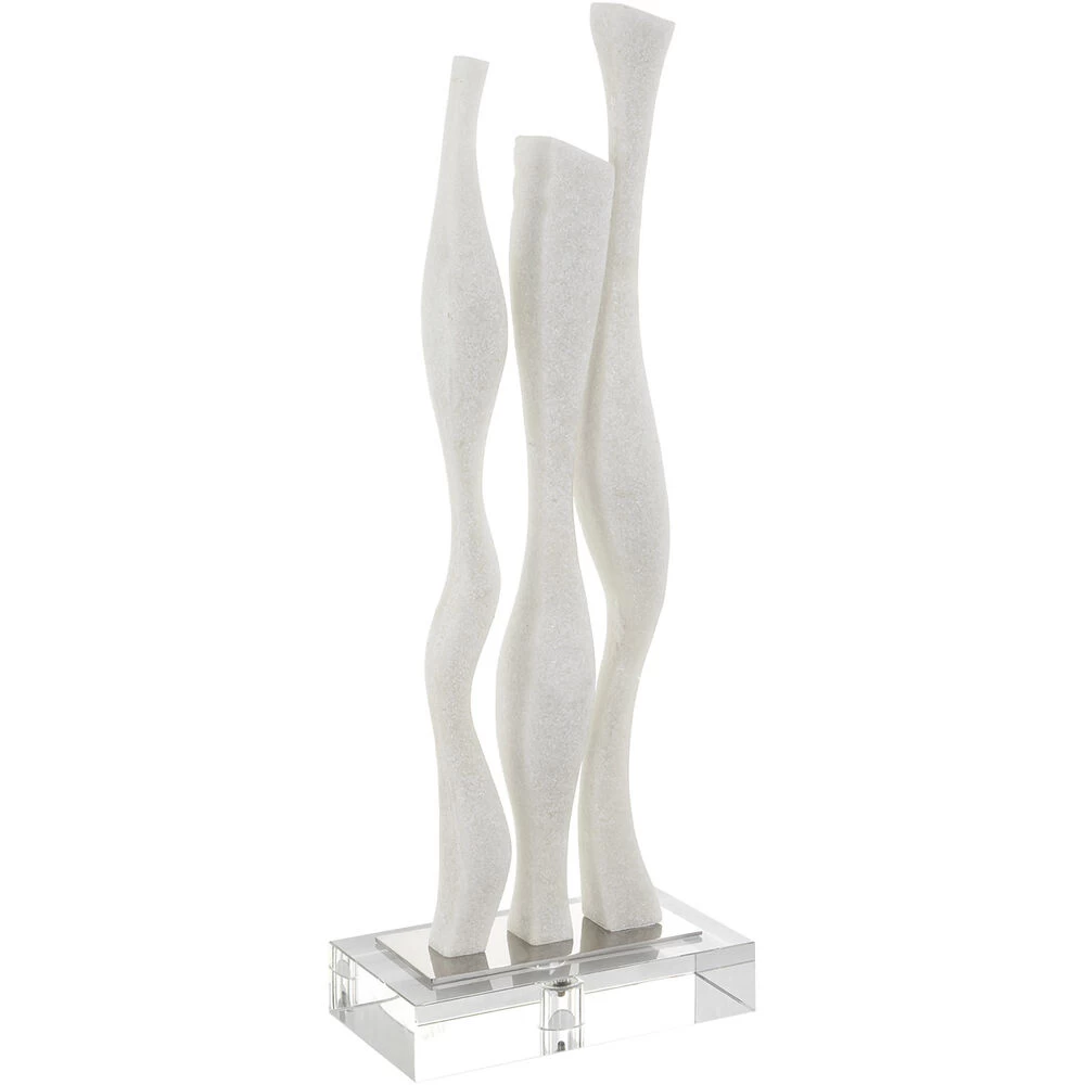 Inspired By Striking Works Of Modern Art, This Abstract Sculpture Is Crafted From Granulated White Marble, Accented By An Elegant Crystal Food And Metal Accent.