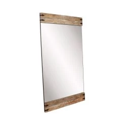 This oversized floor mirror makes a stately appearance with a large rectangular glass with a reclaimed oak wood planks at the top and bottom with wrought iron bolt accents. The mirror comes with D-rings affixed to the back of the frame so you can hang it right on your wall straight out of the box. However, if you prefer it as a floor mirror, it also comes with security hardware to safely lean against your wall. Make any room brighter or appear larger simply by adding the Garrett Mirror to the mix.