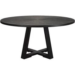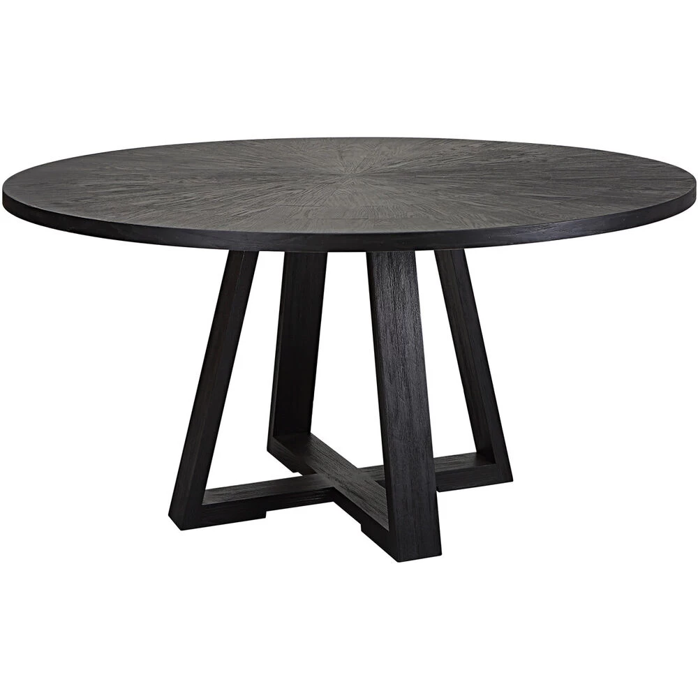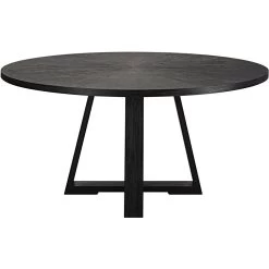 With Clean Casual Styling, This Dining Table Features A Richly Grained Oak Veneer Inlaid Top Finished In A Rich Charcoal Black, Atop A Sturdy Elm Wood Trestle Base. Solid Wood Will Continue To Move With Temperature And Humidity Changes, Which Can Result In Cracks And Uneven Surfaces, Adding To Its Authenticity And Character.