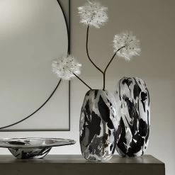 The Gisli small vase is made from glass and features an opaque black and white finish. This bold monochromatic design makes a striking addition to a contemporary living room while adding a sense of organic texture.