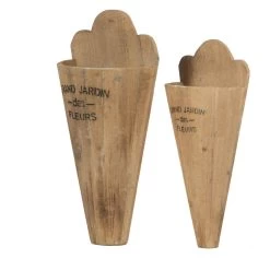 These conical wall planters offer a natural way to display fresh flower cuttings. The phrase stamped on the front β grand Jardin des fleurs β translates from French to βlarge garden of flowers, β and these planters make it easy to transform any area of your home into a private garden of your own. Each set includes two coordinated planters for creative display possibilities.