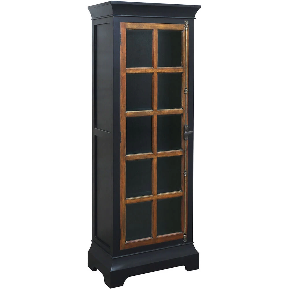 The Haights Bookcase is a tall wooden storage display case perfect for books or decorative items. This one-door cabinet has a dark painted finish and works in a variety of room settings.