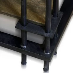 - The burnished metal framing holds each shelf for structural support.