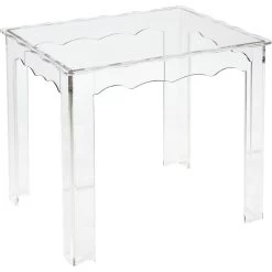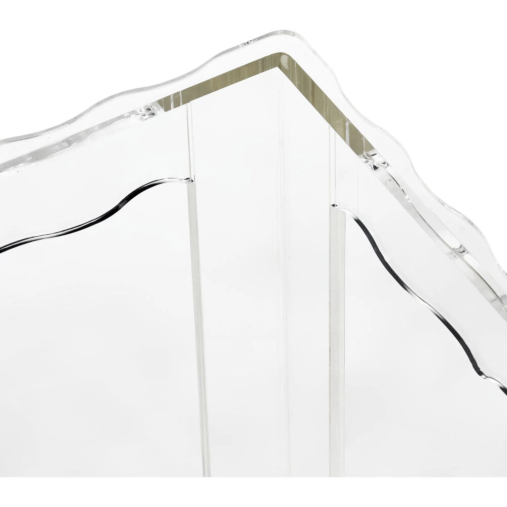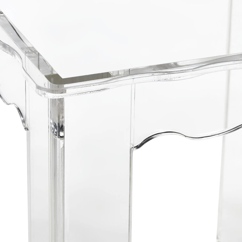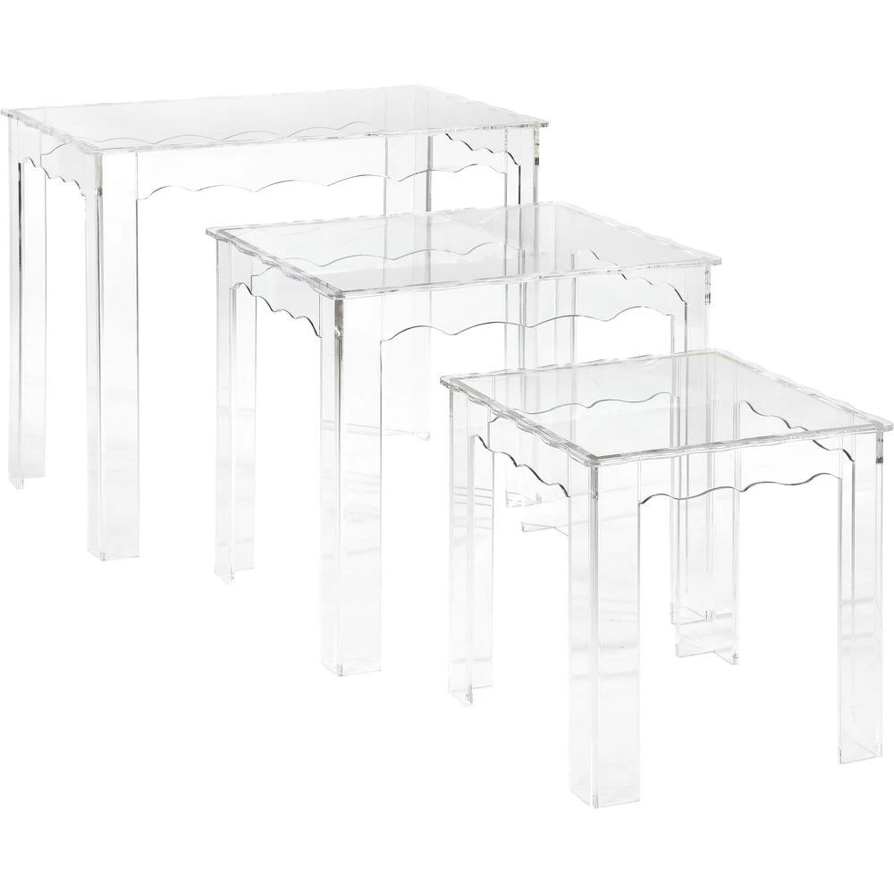 The Jacobs Nesting Tables, sold as a set of three, add instant glam to a modern living room or bedroom. Made from clear acrylic, this simple square nesting design fits one table neatly inside the other. Display together, or separate to add storage at varying heights. The tables’ crystal clear surfaces make an eye-catching statement in traditional as well as contemporary settings.