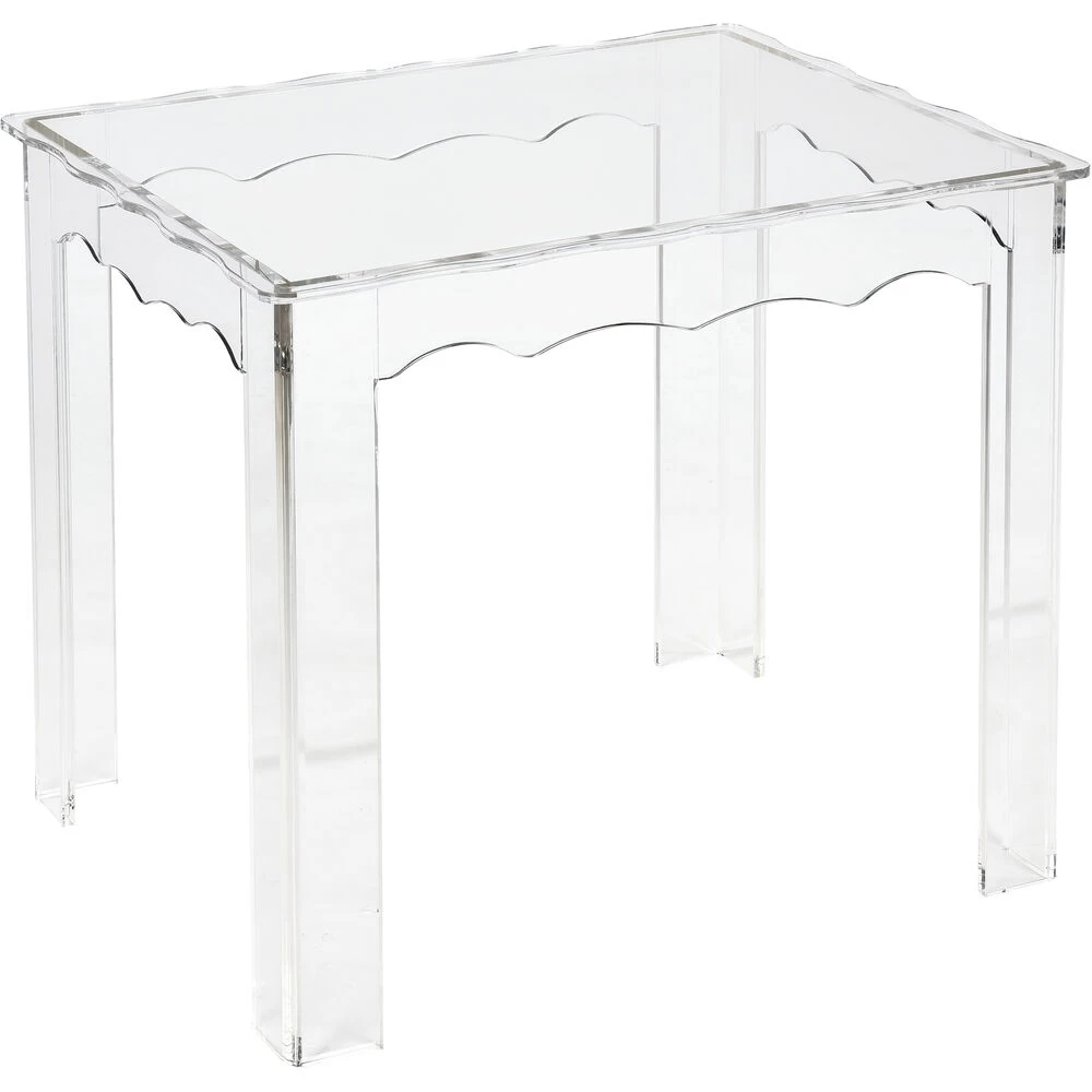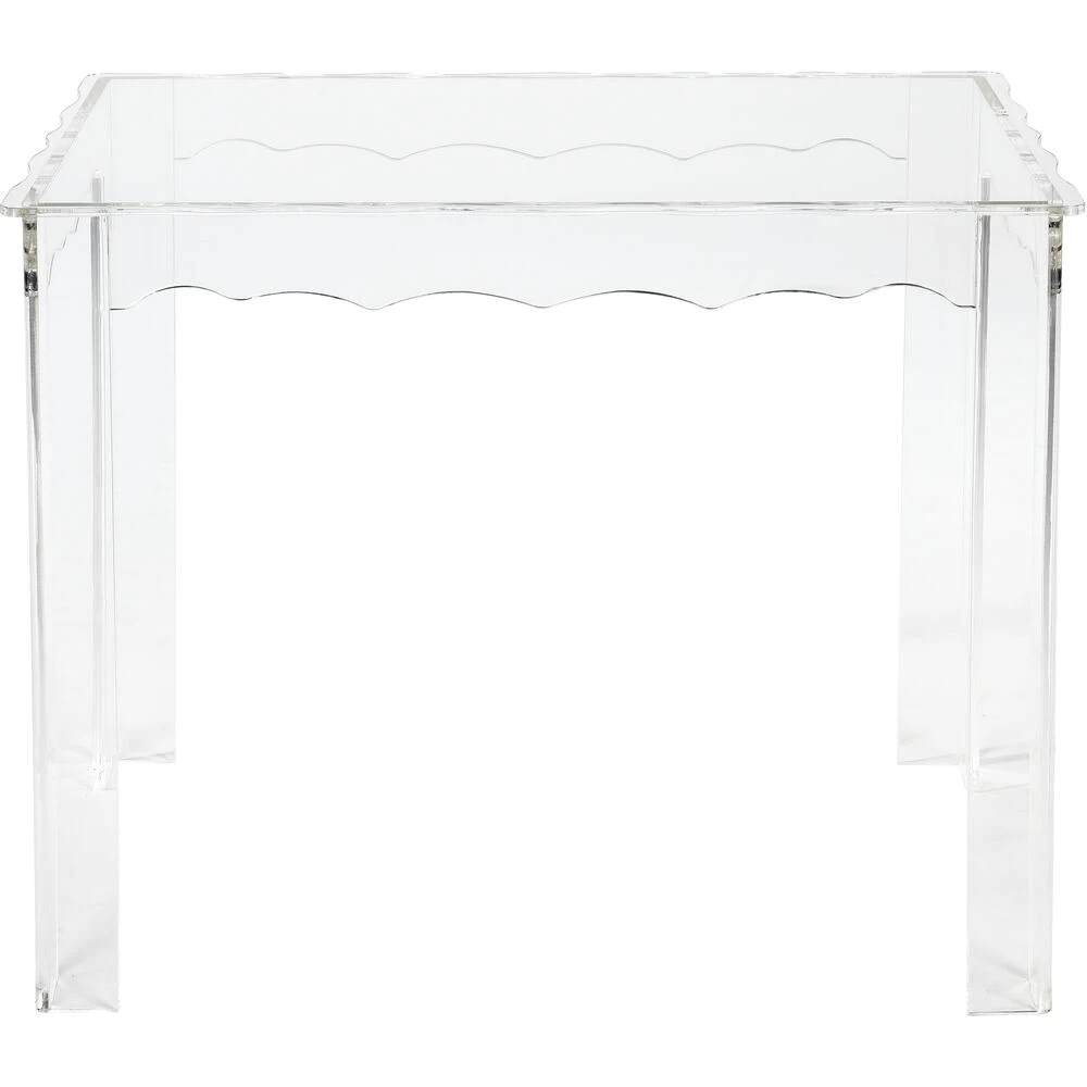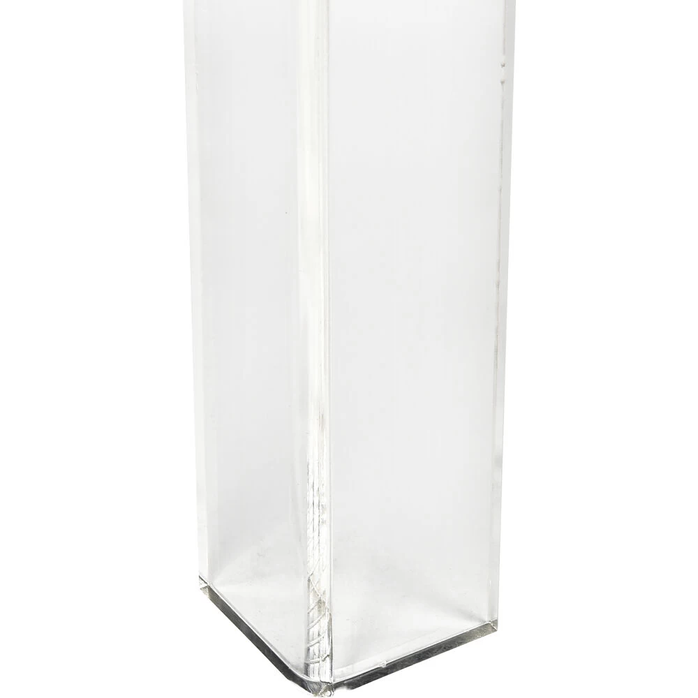 - Base/Foot/Leg Color: Clear Base/Foot/Leg Design: 4 Legs Base/Foot/Leg Material: Acrylic Base/Foot/Leg Width: 1.7 Base/Foot/Leg Depth: 1.7 Base/Foot/Leg Height: 17