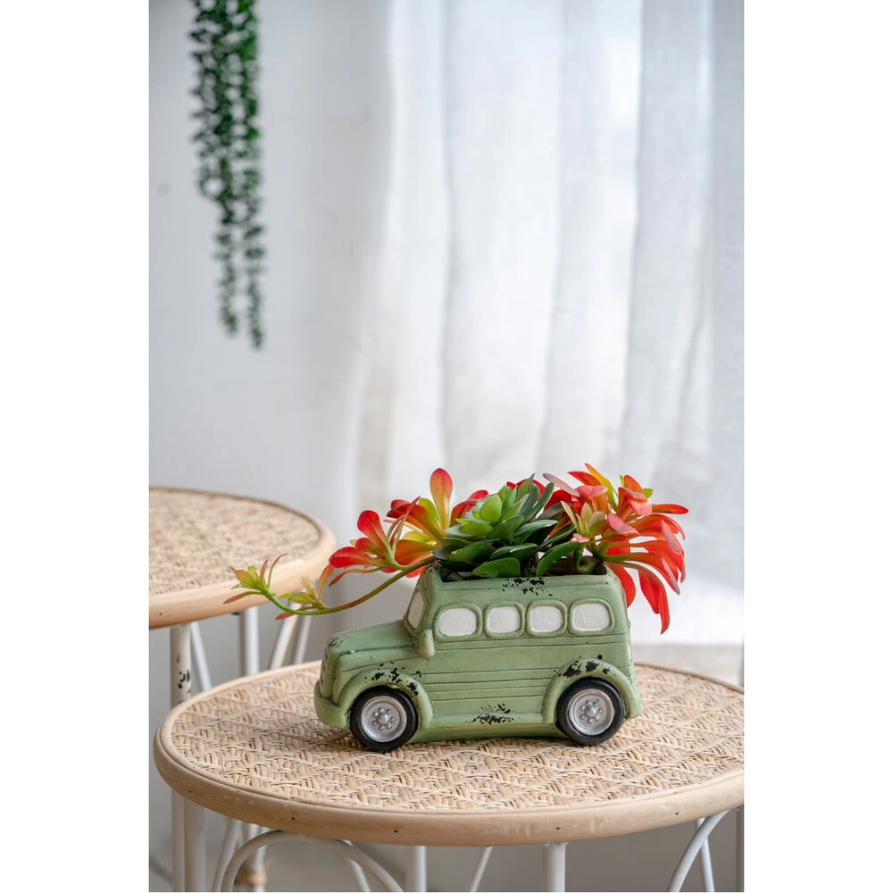 For lovers of off-road vehicles as well as plants, this cute green ceramic Jeep planter is a great decor option. This petite Jeep features an open top for the comfortable housing of a small plant. A good choice for a windowsill in the kitchen or the kids’ room.