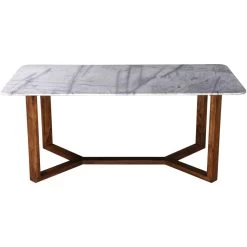Natural materials are molded into a classic staple that will transcend any dining setting. The Jinxx rectangular dining table evokes modern simplicity with its geometric base and frame fashioned from solid Acacia wood. With spacious seating for up to six, Jinxx’s Satwaria marble is heavily veined with darker grey and charcoal striations, resulting in an attractive off-white tone. Please note that due to the natural variances in marble, each table will vary in tone & vein markings. End-to-end style, the Jinxx collection holds vast class and includes round versions of dining, end, coffee, and counter tables. Incorporating natural, uniquely designed materials with contrasting elements like warm woods and stone into your home adds not only appeal and character but naturally soothing elements to style around.
