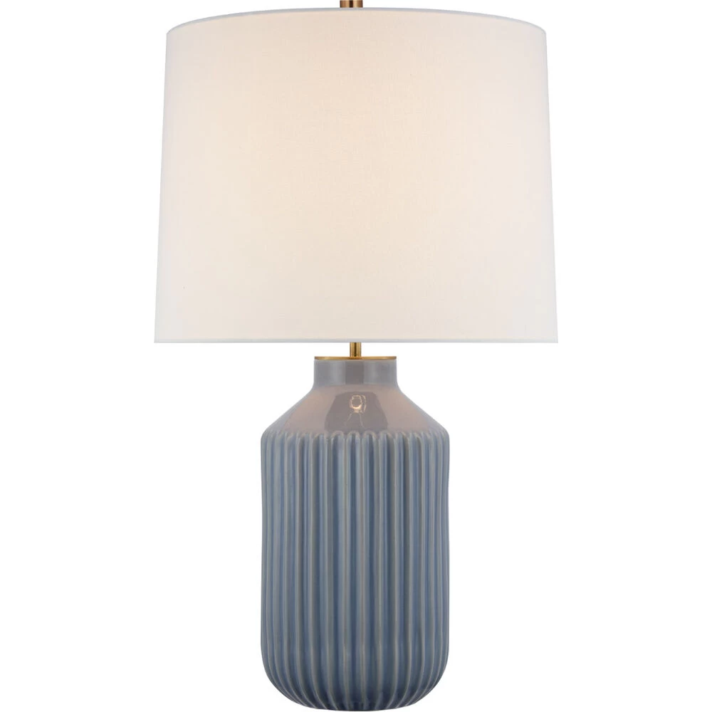 Braylen Medium Ribbed Table Lamp in Polar Blue Crackle with Linen Shade