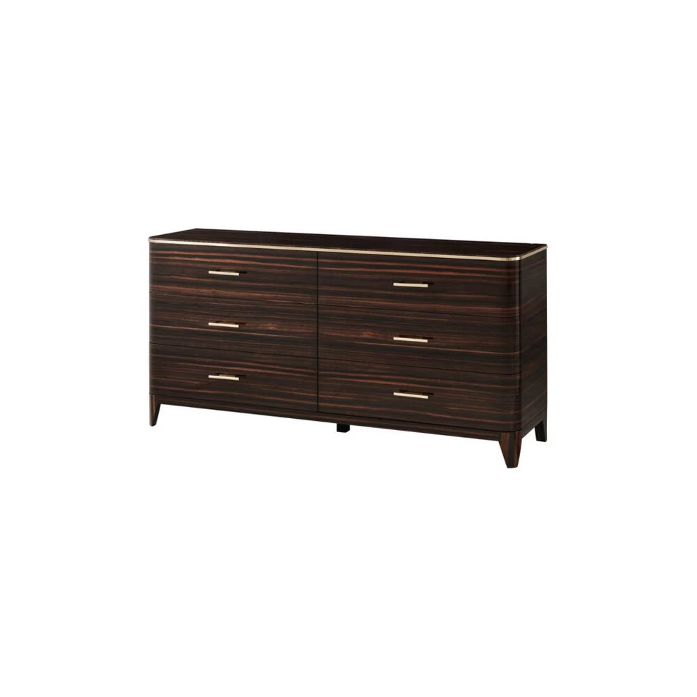 Dresser Rounded Edge Top above Polished Nickel Trim Amara Veneered Six Drawers with Polished Nickel Finish Handles Amara Veneered Tapering Legs