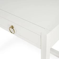 - Key Construction Details: Construction Information: Two storage drawers with English dovetail construction, Ball bearing metal drawer glides 3/4 extendable. Wood scoring & slight rub through for a distressed paint coat look
