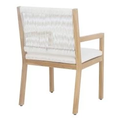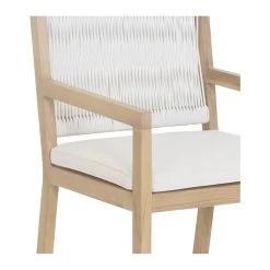 Let the sunlight shine bright on the beautiful white synthetic wicker weave of the Luce outdoor dining chair. Its warm teak frame turns into a darker patina over time, while a removable, easy-to-clean ivory white cushion captures the light and dark contrast of this gorgeous piece. Dining al fresco never looked so good.