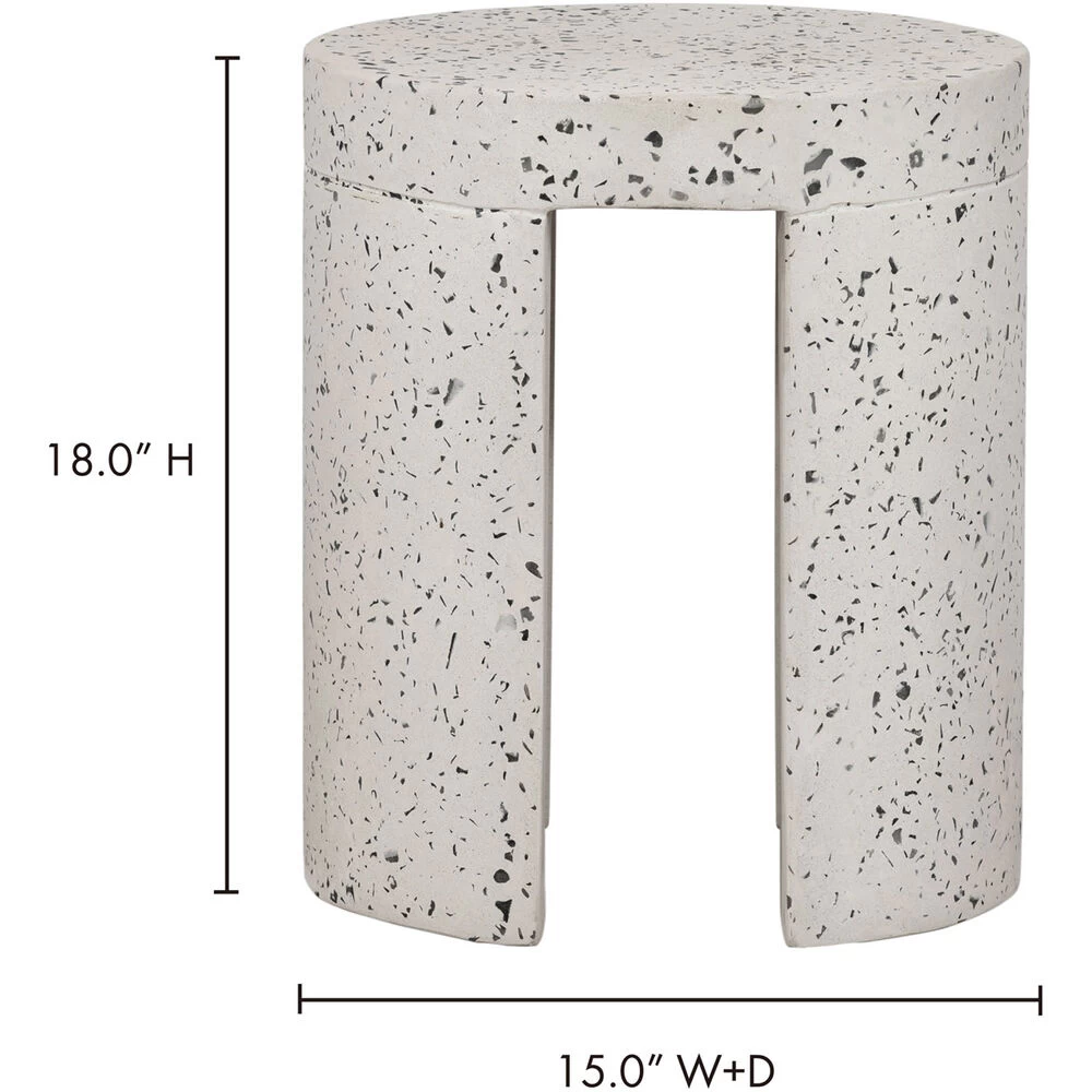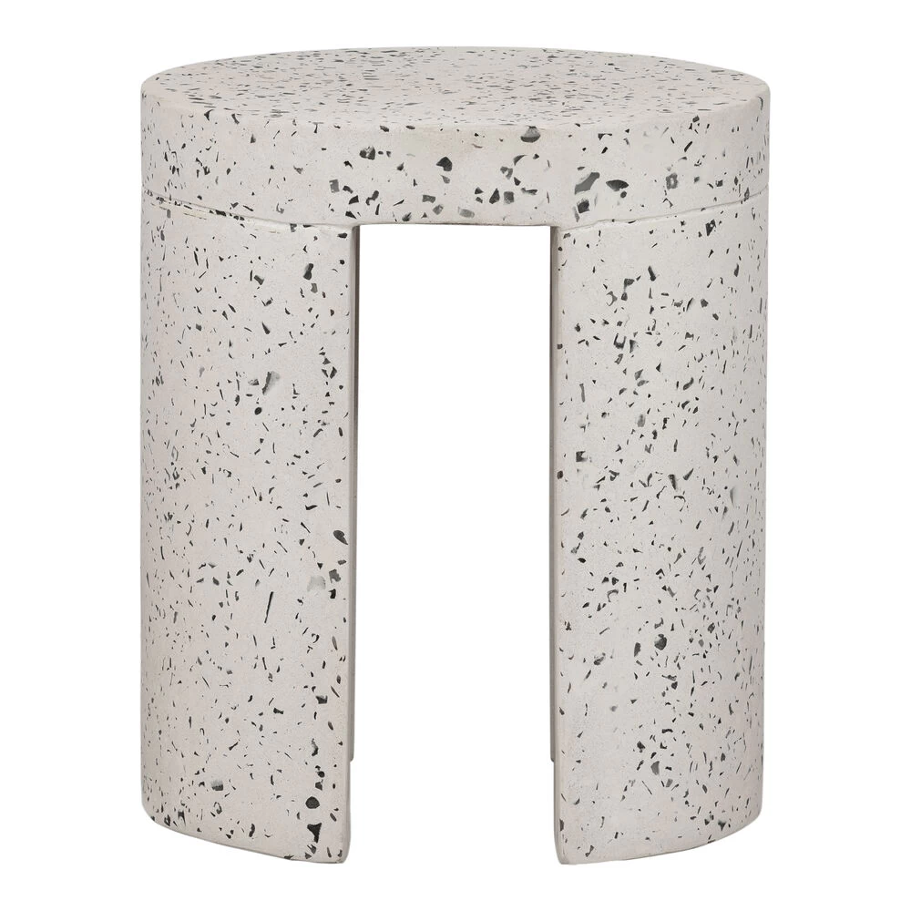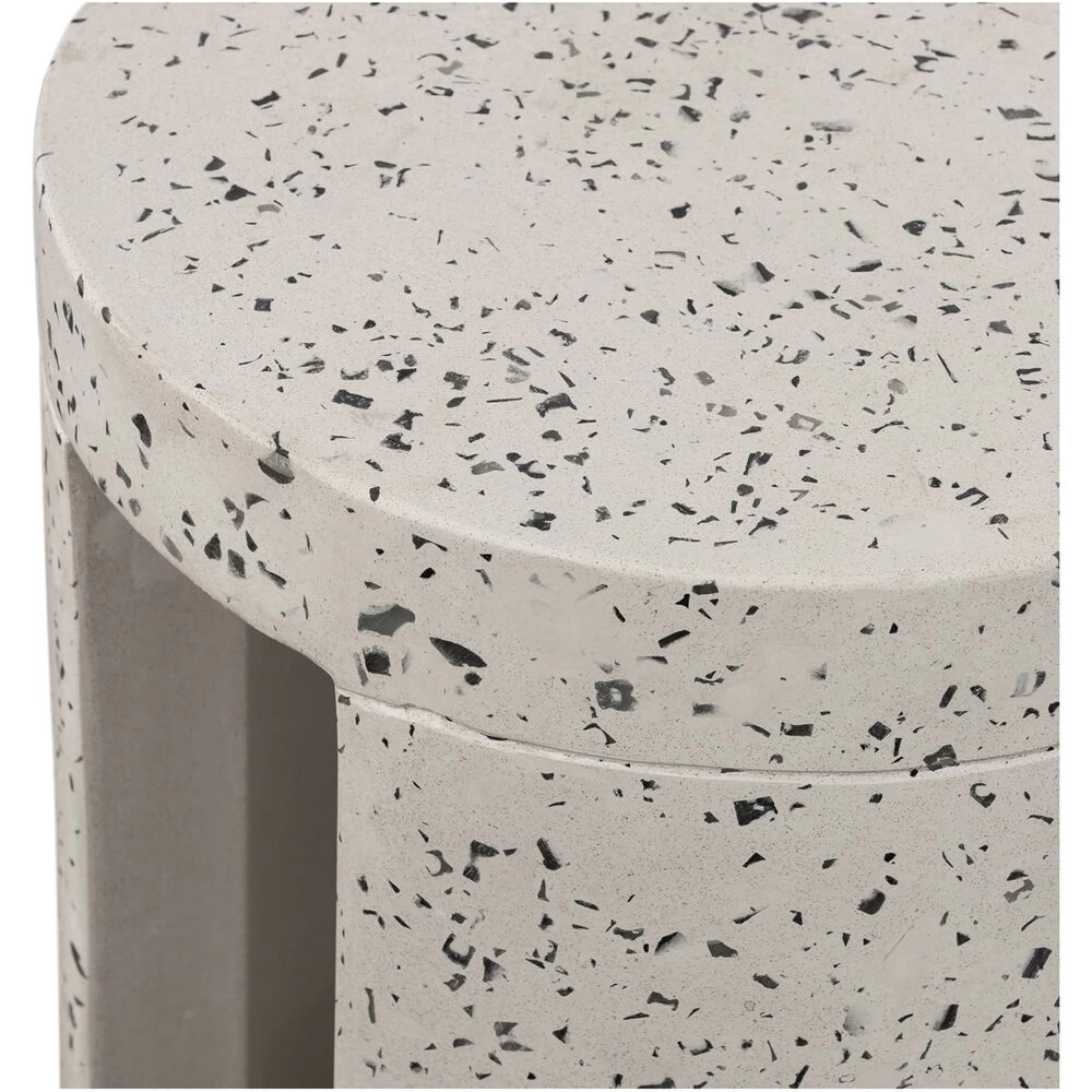 Looking for some garden getaway design? Don’t forget about the small spaces to maximize your outdoor living. Smooth and minimal, this stool is constructed in a unique concrete terrazzo composite that focuses on the natural beauty of minerals with its speckled, contemporary aesthetic. Perfect for an open-plan garden or patio setting, this stool’s rounded geometric shape contrasts so well within an organic environment.