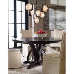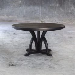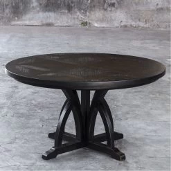 Soft, Weathered Black Finish On Solid Mango Wood Arched Motif Base, With Rub-through Distressing On The Mindi Veneer Inlay Top.