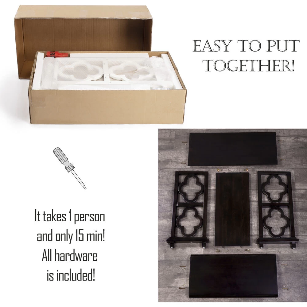 - Key Construction Details: Construction Information: Item requires assembly of shelves to side panels