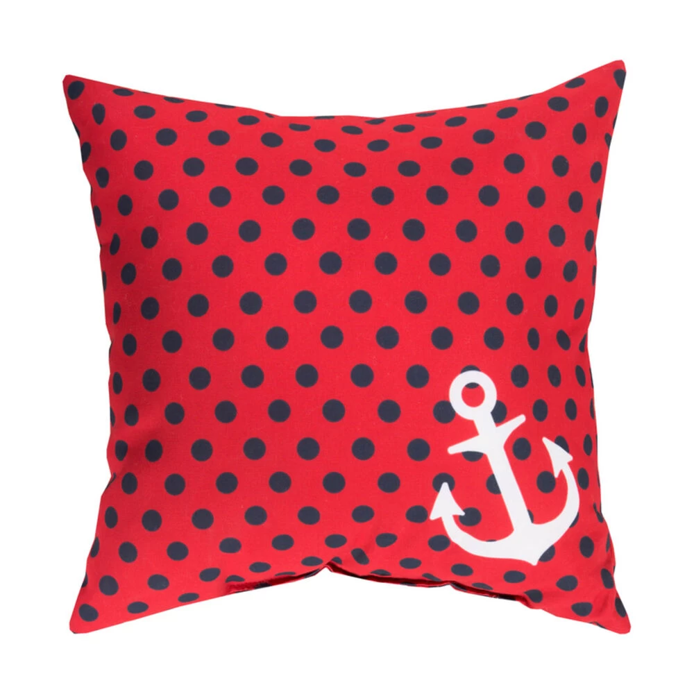 Anchor your indoor or outdoor space in fresh, fashionable design with this perfect pillow! Featuring a bold anchor design in brilliant white mixed with upbeat polka dots and sprinkled across a red backdrop, this piece effortlessly crafts a trendy look for any room. This pillow contains a Virgin Poly Styrene Bead fill providing a reliable and affordable solution to updating your indoor or outdoor decor.