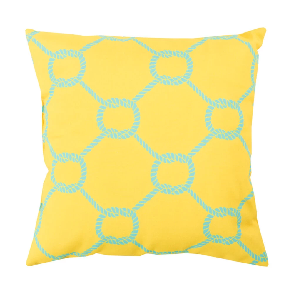 Get roped in by the nautical feel of this polished pillow! Featuring an intricate, intersecting rope design in smooth blue against an exquisite yellow backdrop, this is the perfect piece to create a finished look in any room. This pillow contains a Virgin Poly Styrene Bead fill providing a reliable and affordable solution to updating your indoor or outdoor decor.