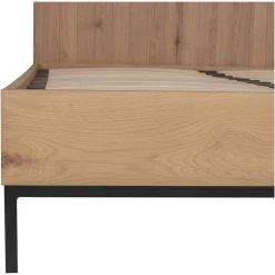 Bring the scandinavian vibes to your space with the Montego Bed. The beautifully crafted Headboard is made from solid Oak wood, showing off the natural knots and unique grain patterns. In addition, the slim metal legs add an airiness to the bedroom, making it industrial yet contemporary.