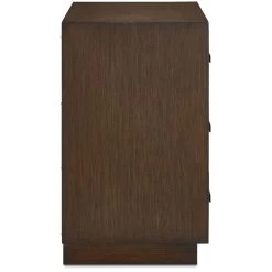 Notable for its extraordinary functionality and cool design, the Morombe Chest is nothing short of artistry in wood. A deep-toned distressed cocoa finish highlights the skillfully carved patterns of natural wood that form embedded squares in a stylish geometric illusion of depth. Each of the three drawers on this chest has soft-close drawer glides and solid mahogany dovetail drawer boxes.