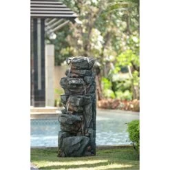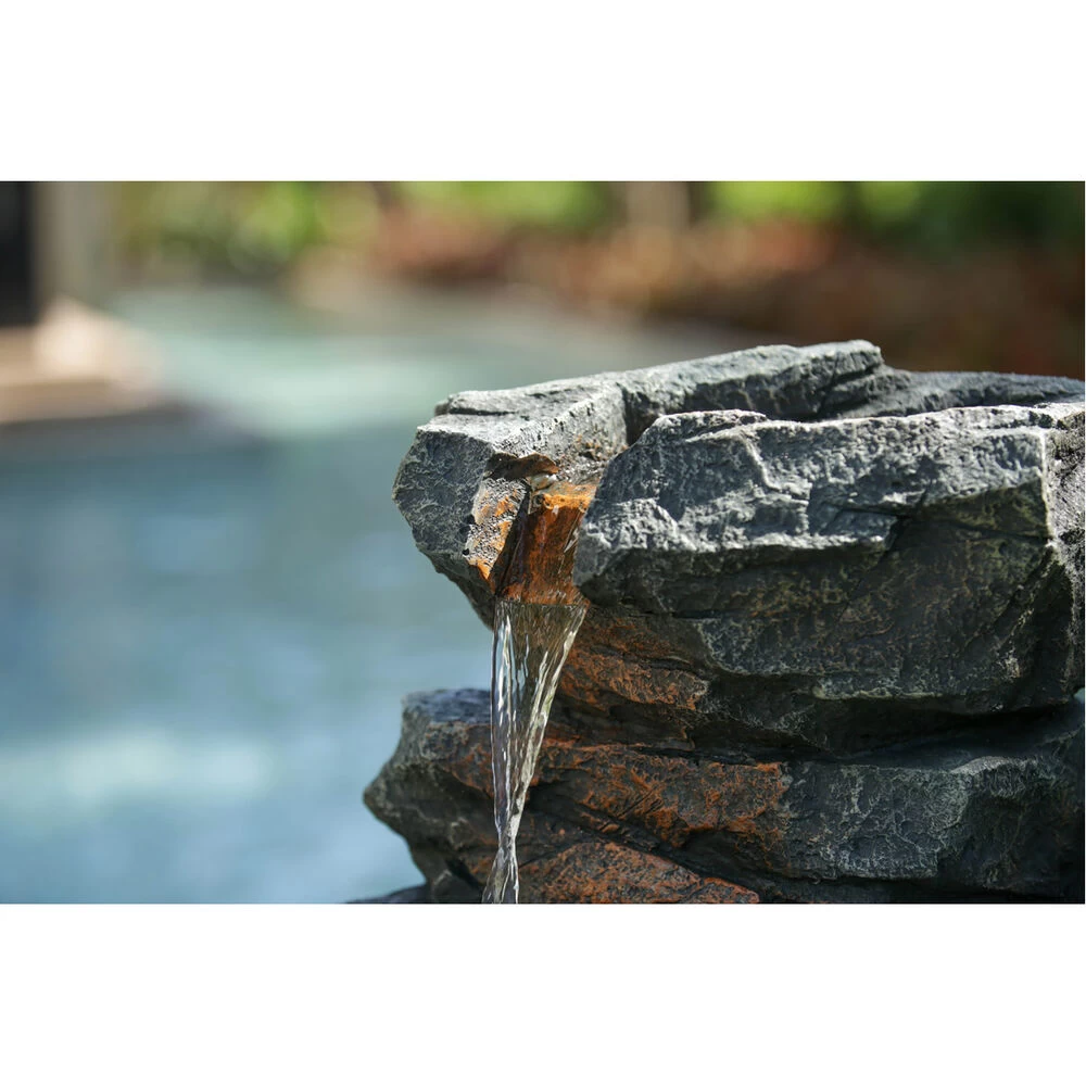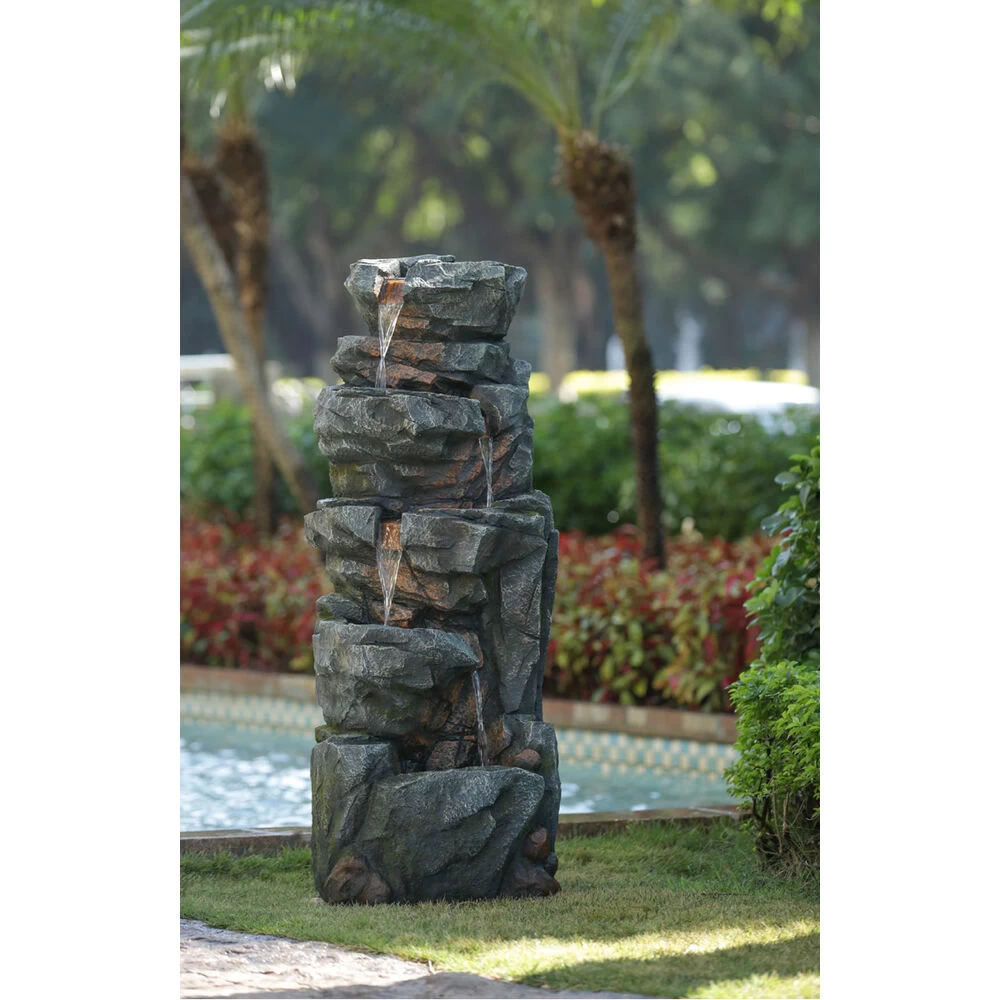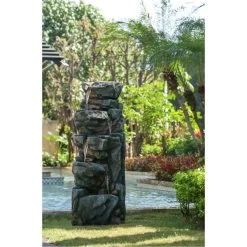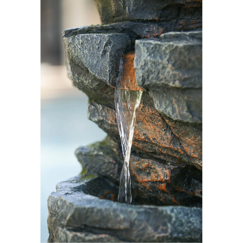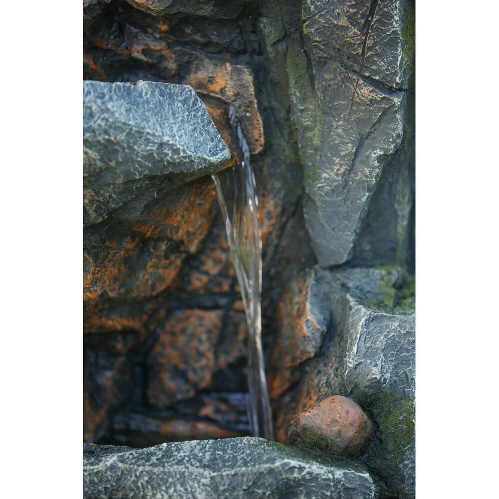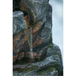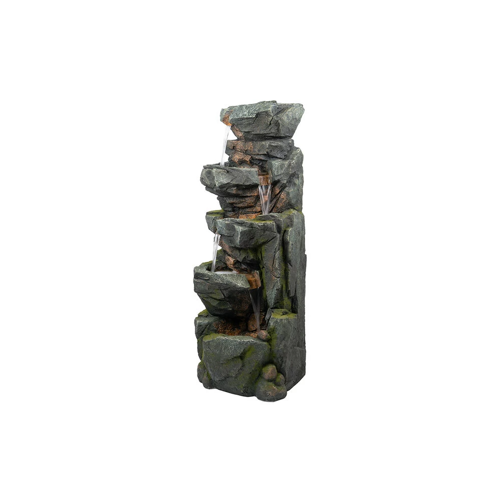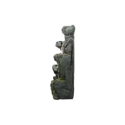 The lovely look and tranquil sound of water tricking down a rock wall is realistically depicted in this natural stone fountain with moss. This tall, slender piece uses gray and green polyresin to replicate the look of moss-covered stone. Use to make a dramatic yet peaceful statement against any exterior wall or patio area.