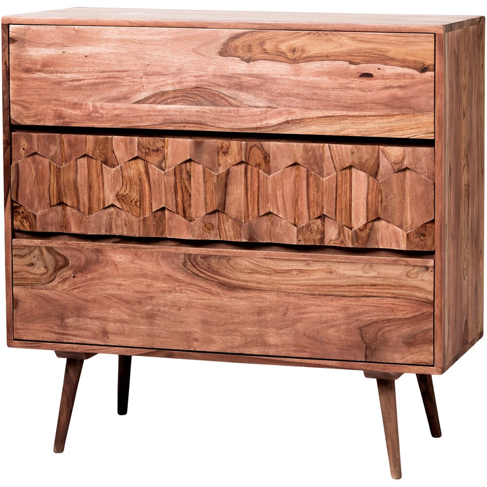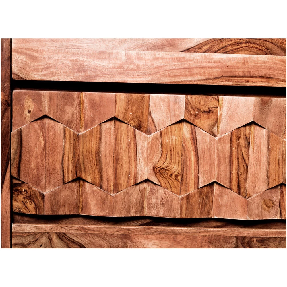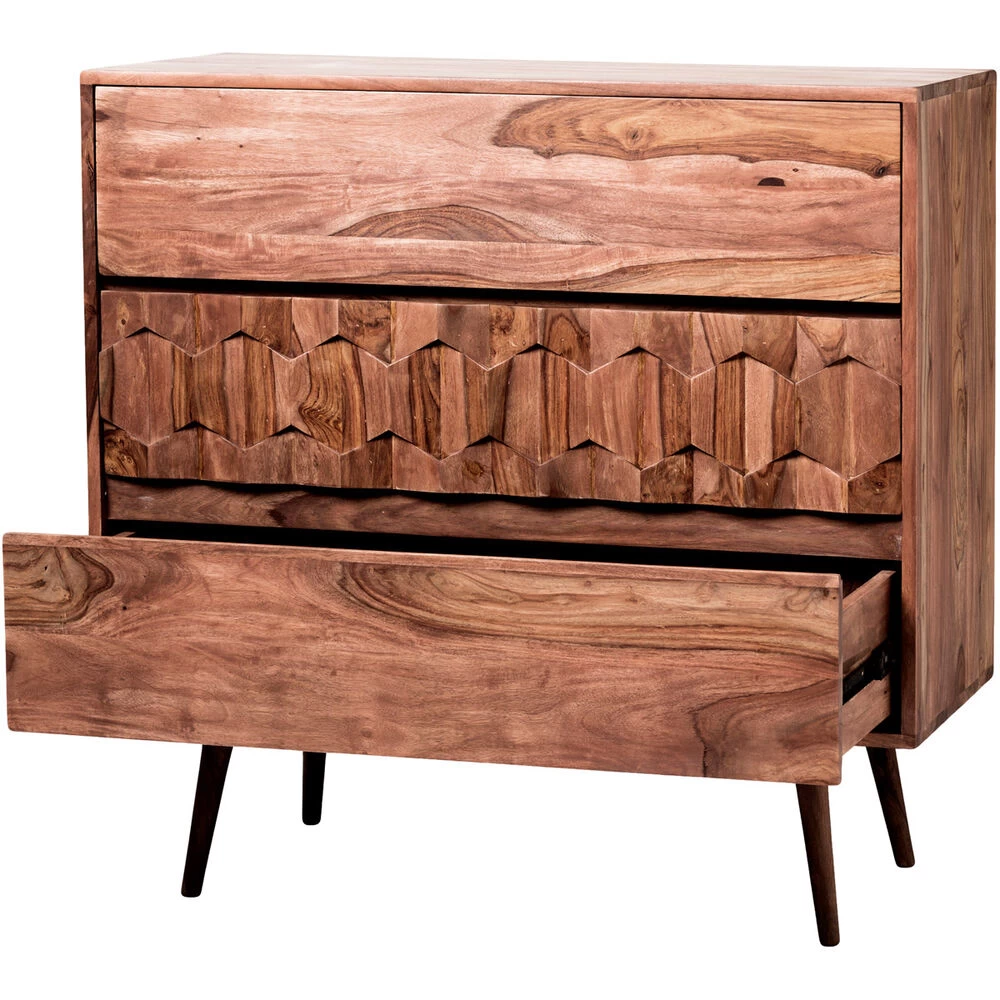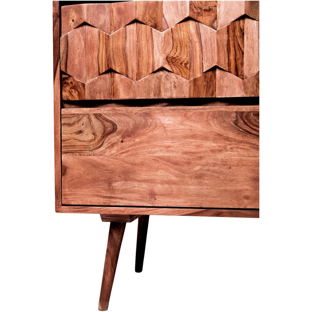 The O2 chest is a retro-inspired with a modern twist. Constructed with solid sheesham wood, this piece makes it resistant to major wear and tear. Its warm tone and intricate drawer front provides character to your bedroom space.