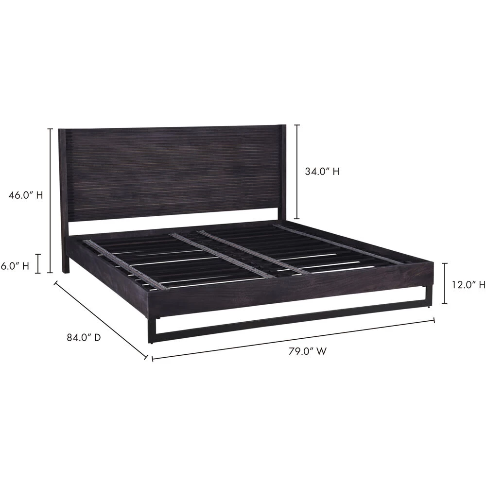 - Height under Bed: 6Distressed Finish: NoWood Finish: CHARCOALFinished Back: YesGloss Level: Semi-GlossFrame Material: WoodRecycled Content: NoReclaimed Wood: NoLeg Height: 6Solid mango wood constructionSleek, metal legsSupportive slats are included with this design to ensure the mattress doesnt sink or slide, no box spring necessaryPlease note that no two items are alike, there will be a natural variation between each piece due to the wood’s distinct character, grains & knots in each piece of wood