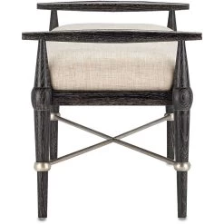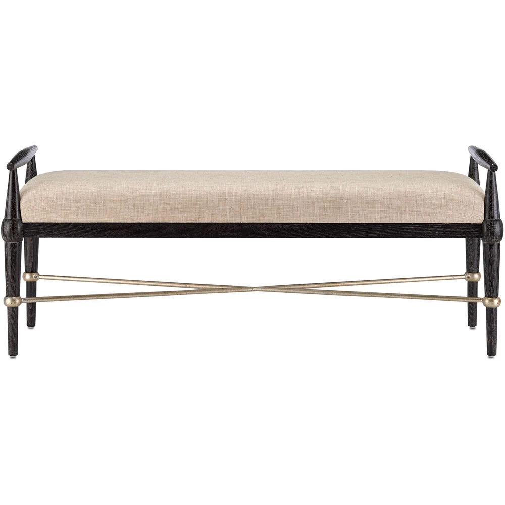 The Perrin Natural Bench is our director of furniture Aimee Kurzner’s take on mid-century modern but with a slight transitional twist. Made of oak that has been treated to an ebonized taupe finish, the bench is ornamented with iron stretchers in a silver Granello finish. Upholstered in a Finn Natural fabric, which is made of 100 percent polyester We also offer the Perrin Natural as an ottoman. Cleaning code: S. Also available in muslin.