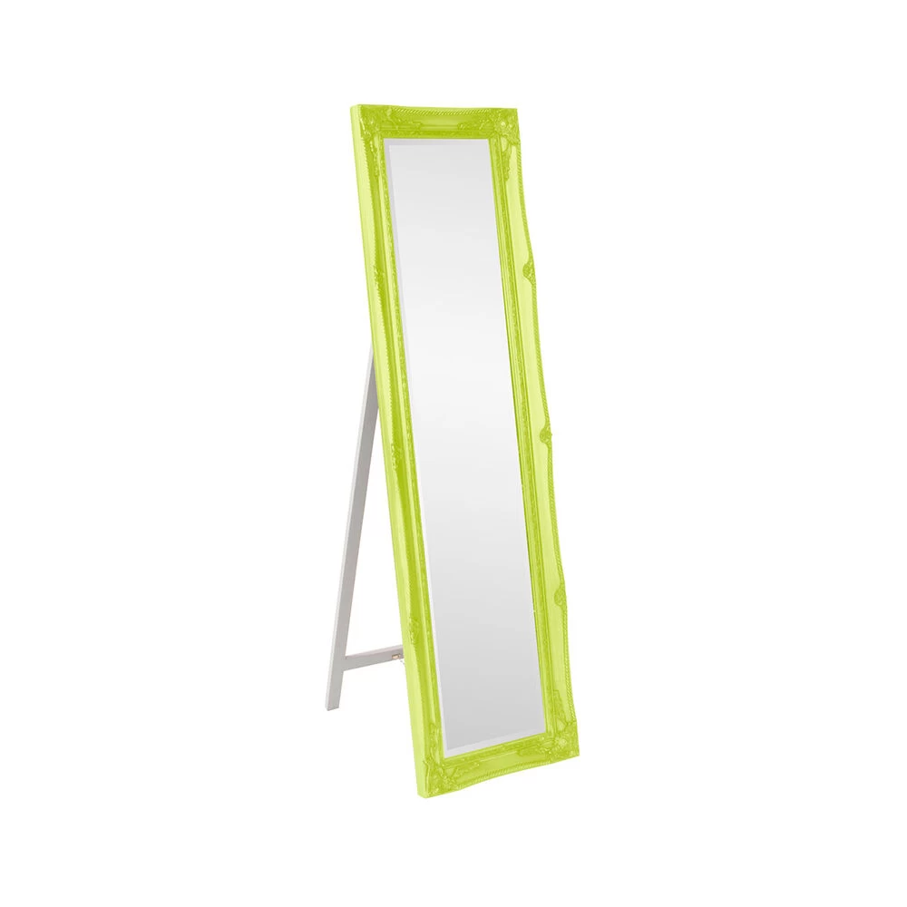 The Queen Ann Mirror features a rectangular frame fashioned from wood accented with a beaded trim and decorative adornments on each side of the frame. It is then finished in our bold glossy green lacquer. The Queen Ann Mirror is part of our custom paint program and is available in one of ten vivid colors. It is proudly painted in the USA.