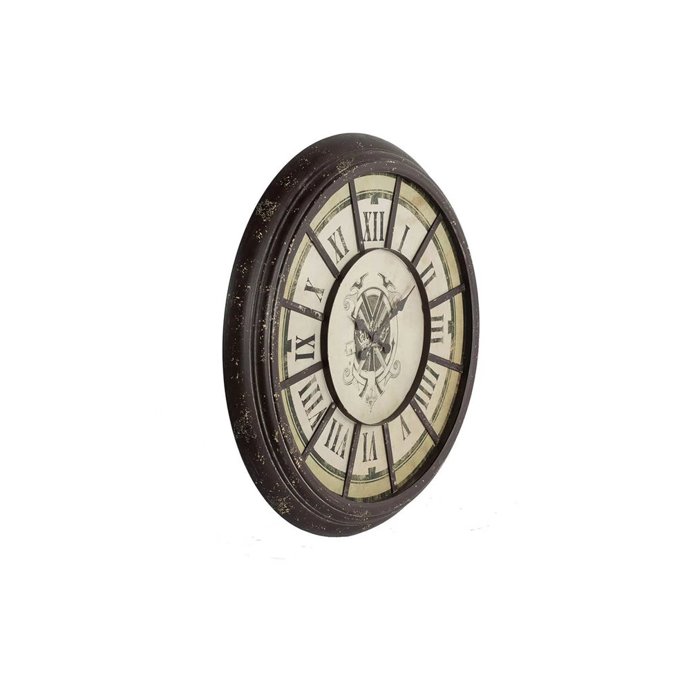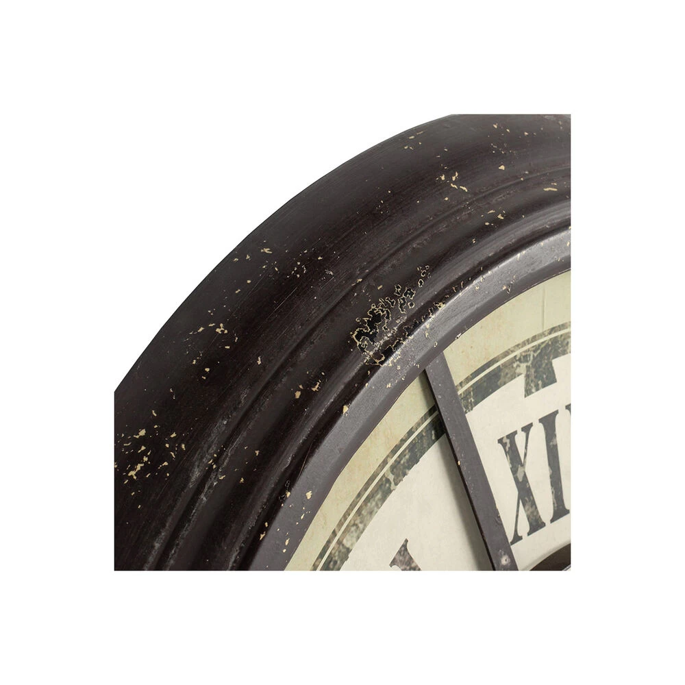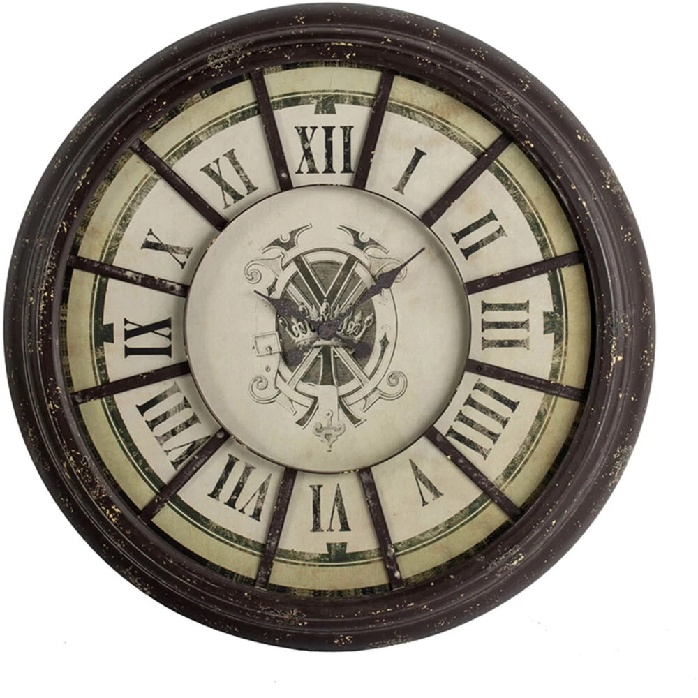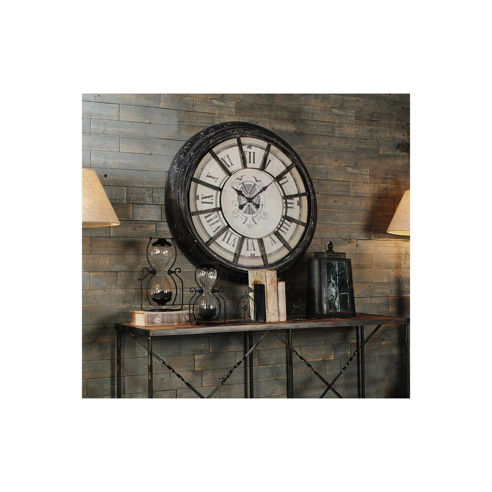 With its distressed, antique gray finish, bold roman numerals, and regal-looking crest, the Randall Oversized Wall Clock offers classic style in an impressive size. Feature this dynamic clock in an office foyer, above a great room mantle, or in a lofty grand kitchen. The vintage look of this clock combined with its neutral colors make it a versatile piece for any home or office space.