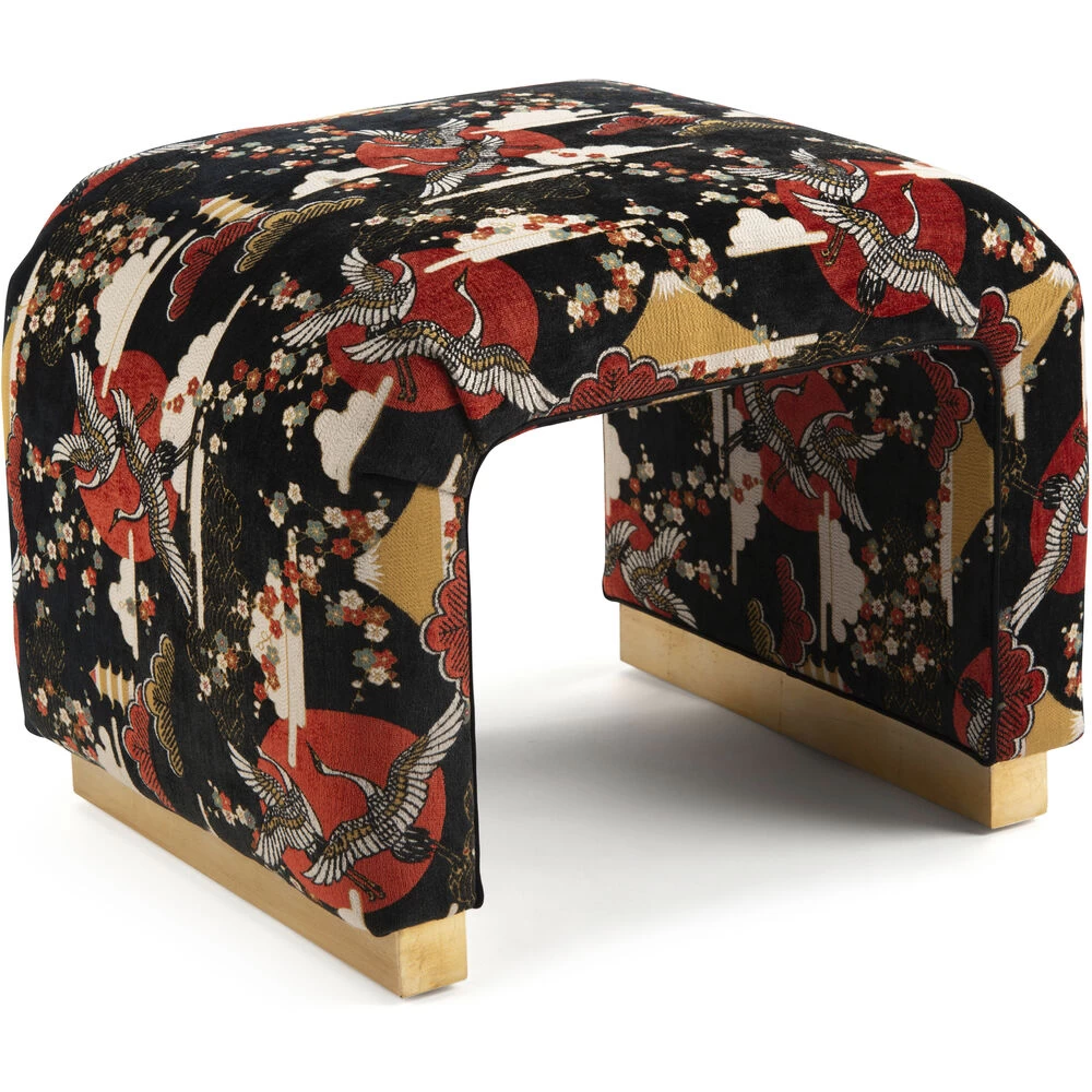 The Rialto Bench is a simple design that is greatly elevated through minute details. A luxurious body is enveloped in Chioco Coral Reef fabric, with small welt trim in Celano Black 2178 on the legs, the seat’s lower edge, and the inner edge of the base. The base, finished in Valyrian Gold, provides playful contrast to the rest of the piece that generates visual interest. Possessing an excess of depth and texture, the Rialto makes for a stunning addition to any interior space.