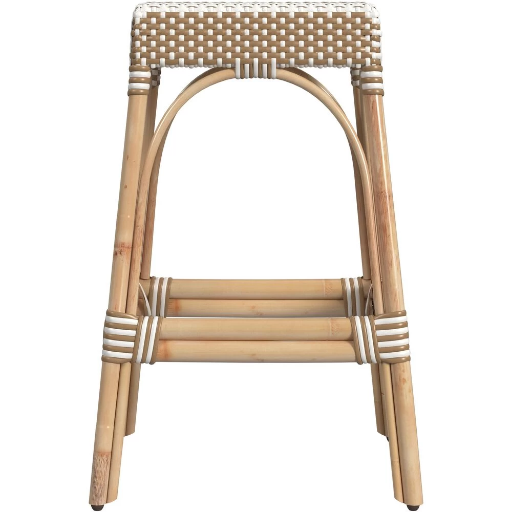Robias Rectangular Rattan 30″ Bar Stool in Tan and White Stripe