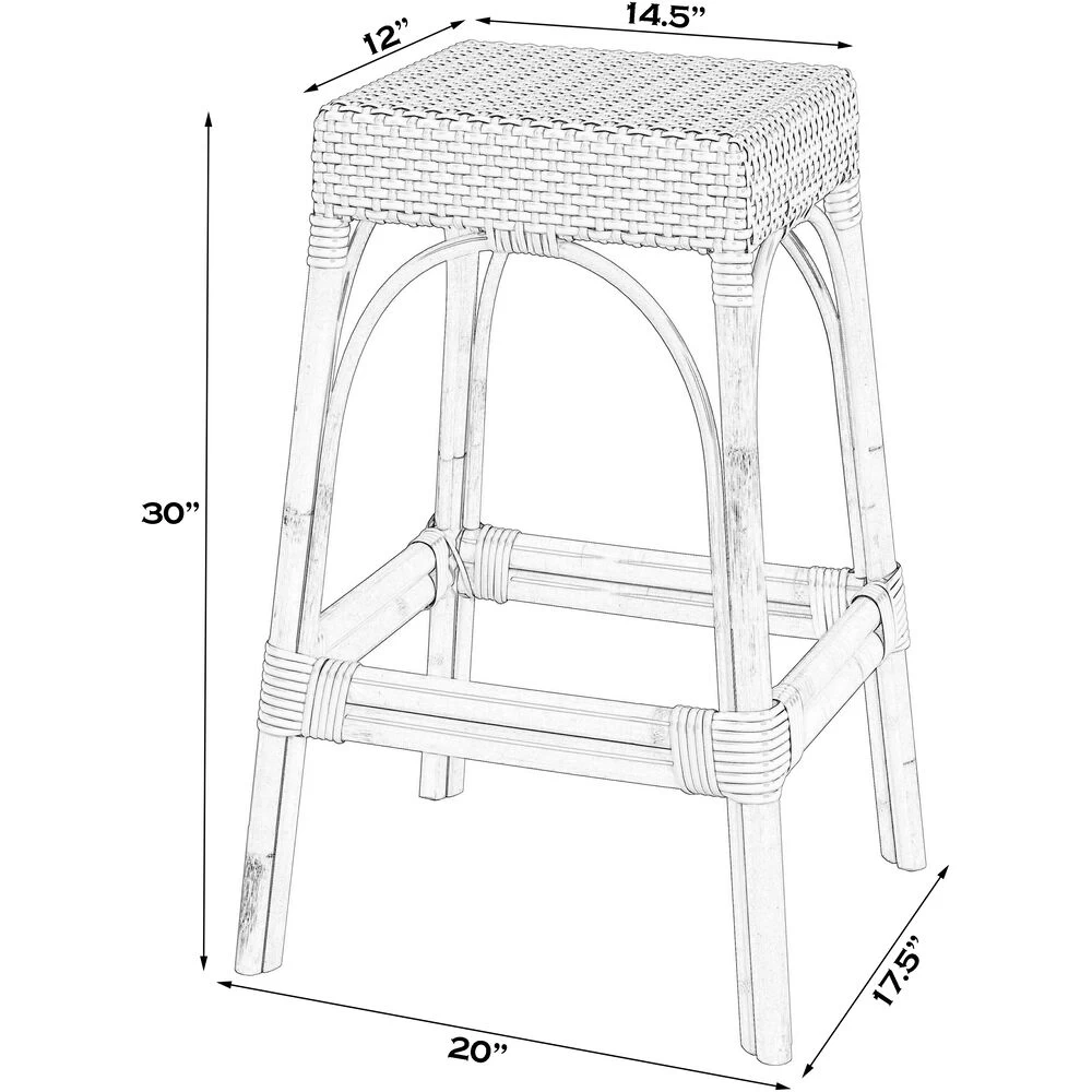 Butler Specialty Company Robias Rectangular Rattan 30″ Bar Stool, Tan and White Stripe