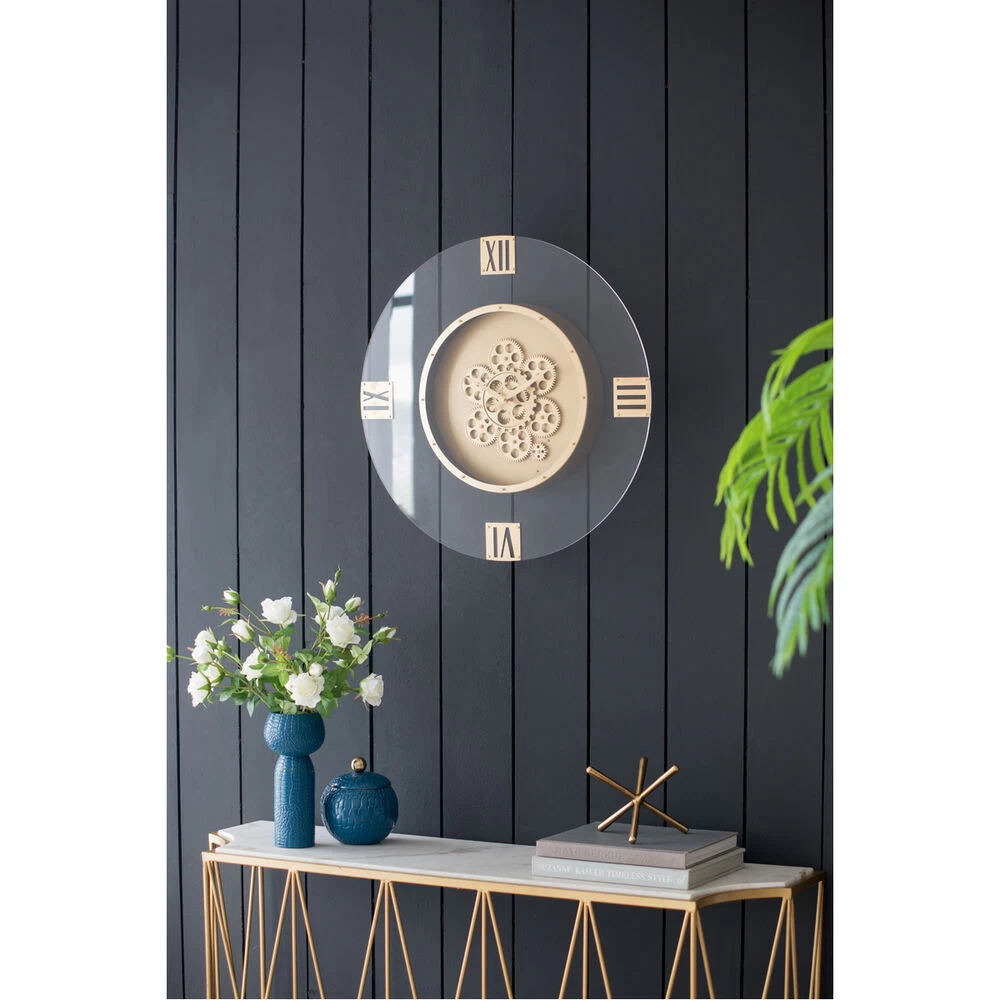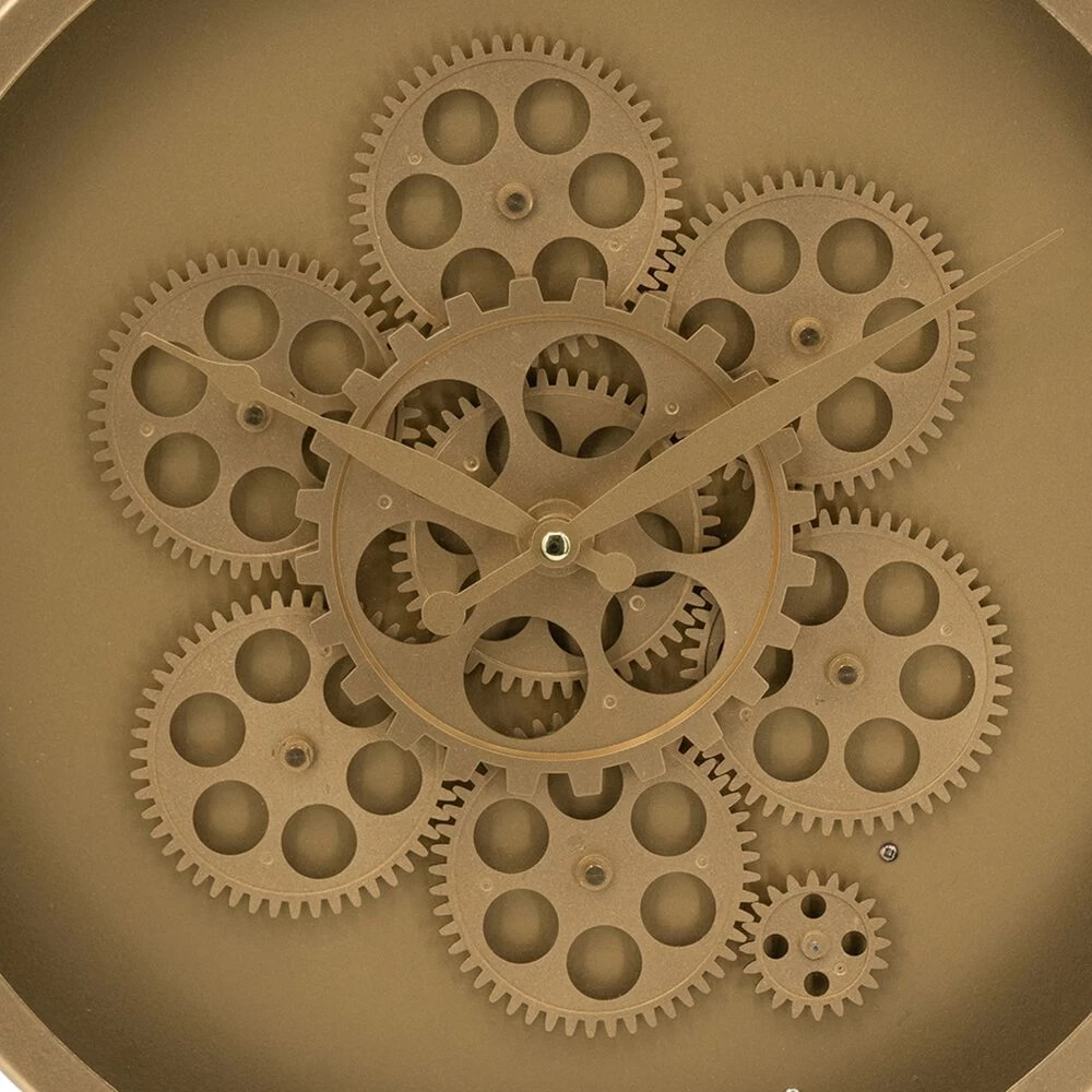 - This moving gears clock is great masterpiece for your empty wall. Adds a living element to the environment.