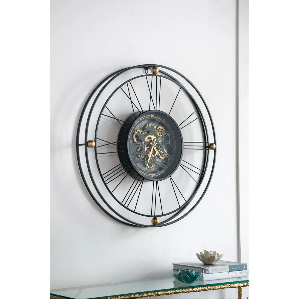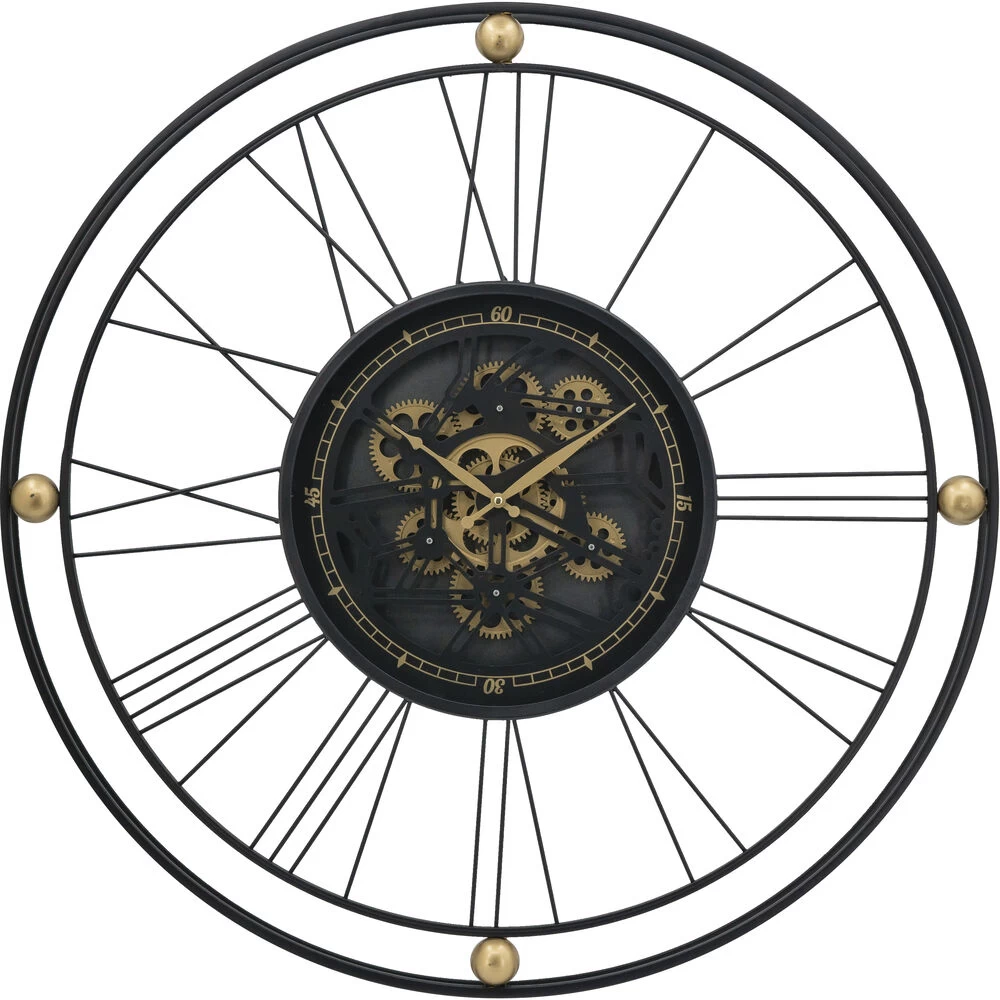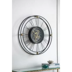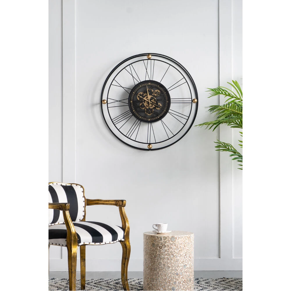 Gears Round Wall Clock – 31.5″Dia. – Black/Gold