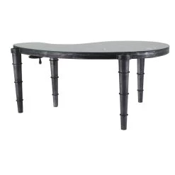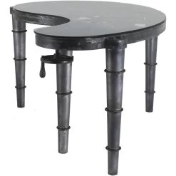 A desk that twists a classic industrial look for your modern home office design. The Shifting Gears desk presents an all-iron construction and heavy-duty tempered glass top. With mechanical legs and a curved shape, this desk means business.