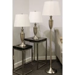 - Set Component Dimensions: Table Lamps: 7″W x 7″D x 28″H Floor Lamp: 10.5″W x 10.5″D x 60″H