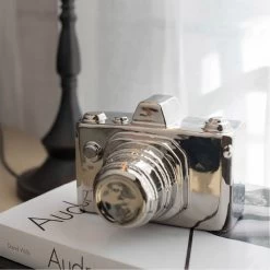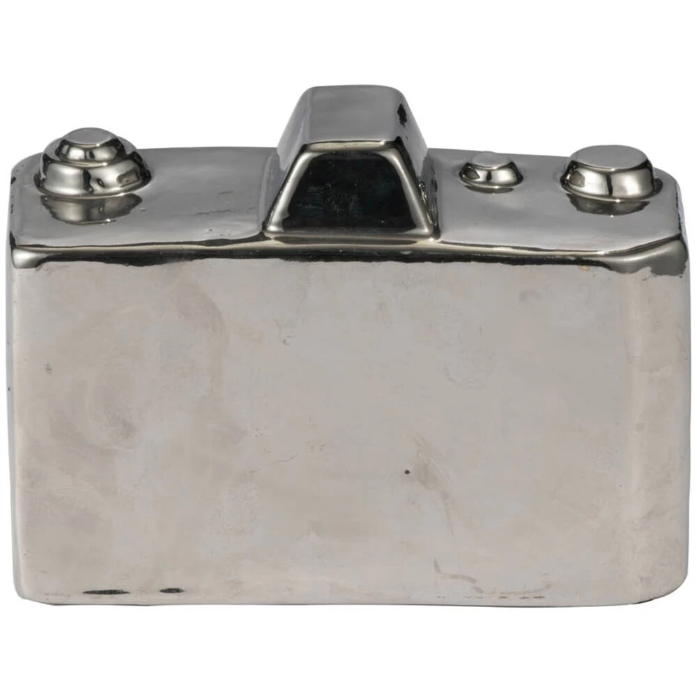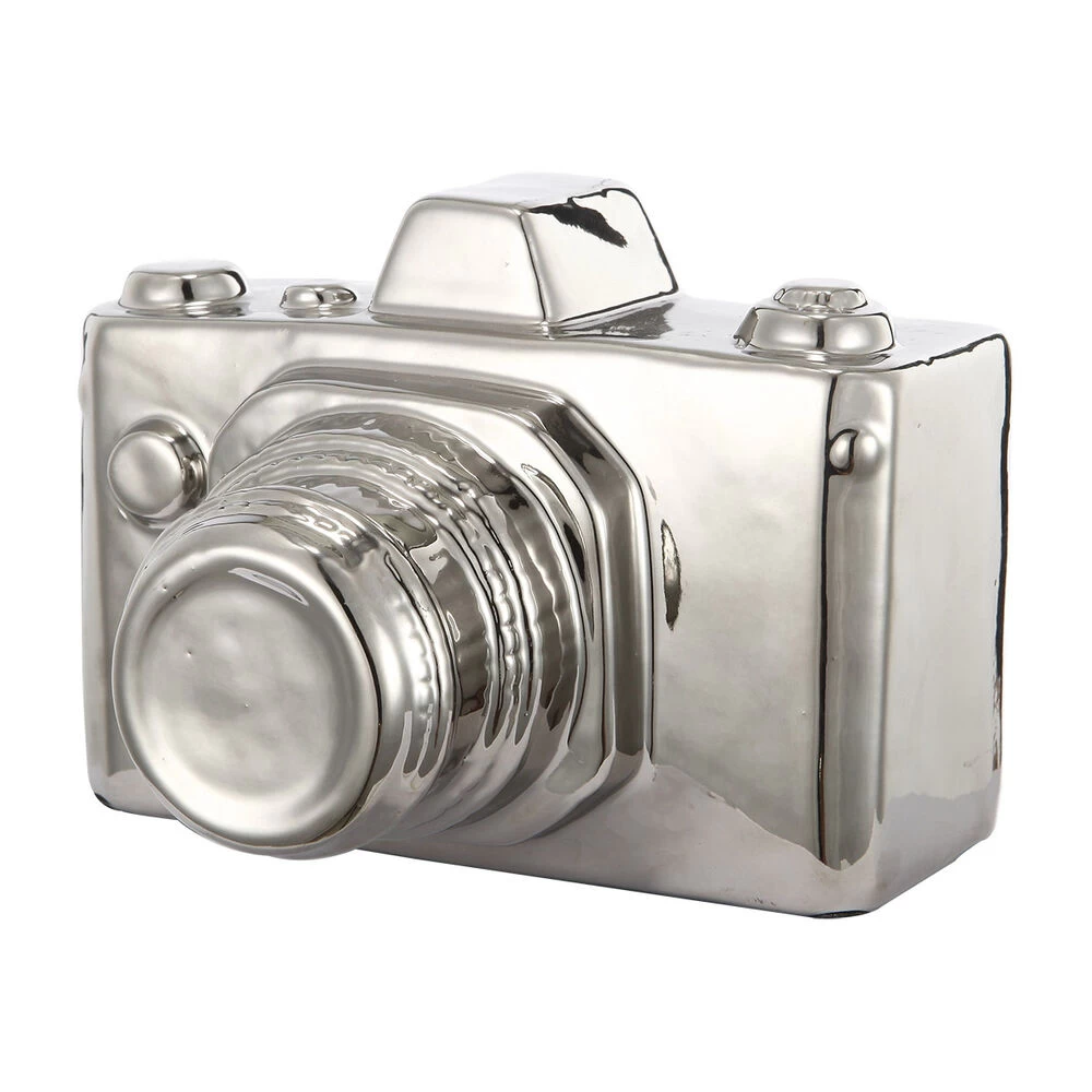With its gleaming shine and classic camera shape, the Silver Camera accent inspires conversation and evokes memories with its modern pop-art feel. Place on an chic office desk, eclectic entryway table, or on a shelf in a home library for a dazzling, slightly nostalgic feel. The Silver Camera makes an ideal gift for photographers and photography enthusiasts.