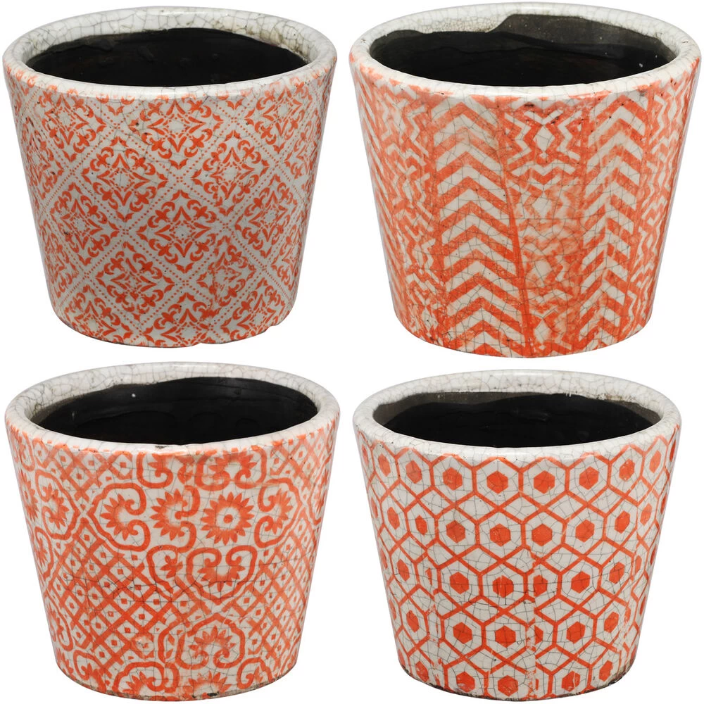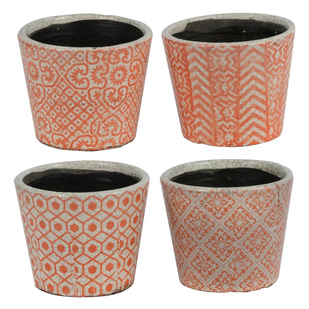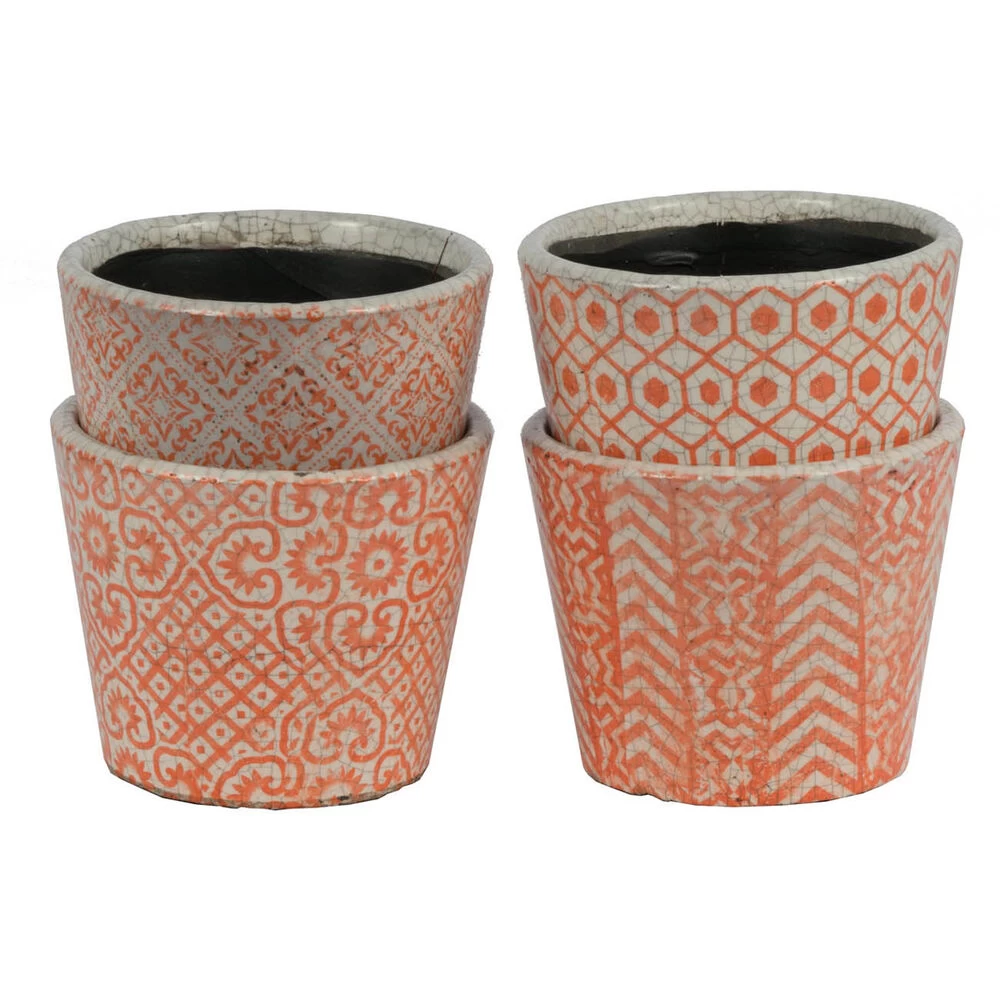 Add a pop of color with your flora in this set of Small Planters. Made from 100% terracotta, these planters feature orange and white patterns with a different print on each planter.