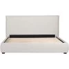Anise Finish Frame with Brushed Nickel Finish Corners. Horizontally Channeled Upholstered Headboard. Upholstered Rails with Tapering Legs