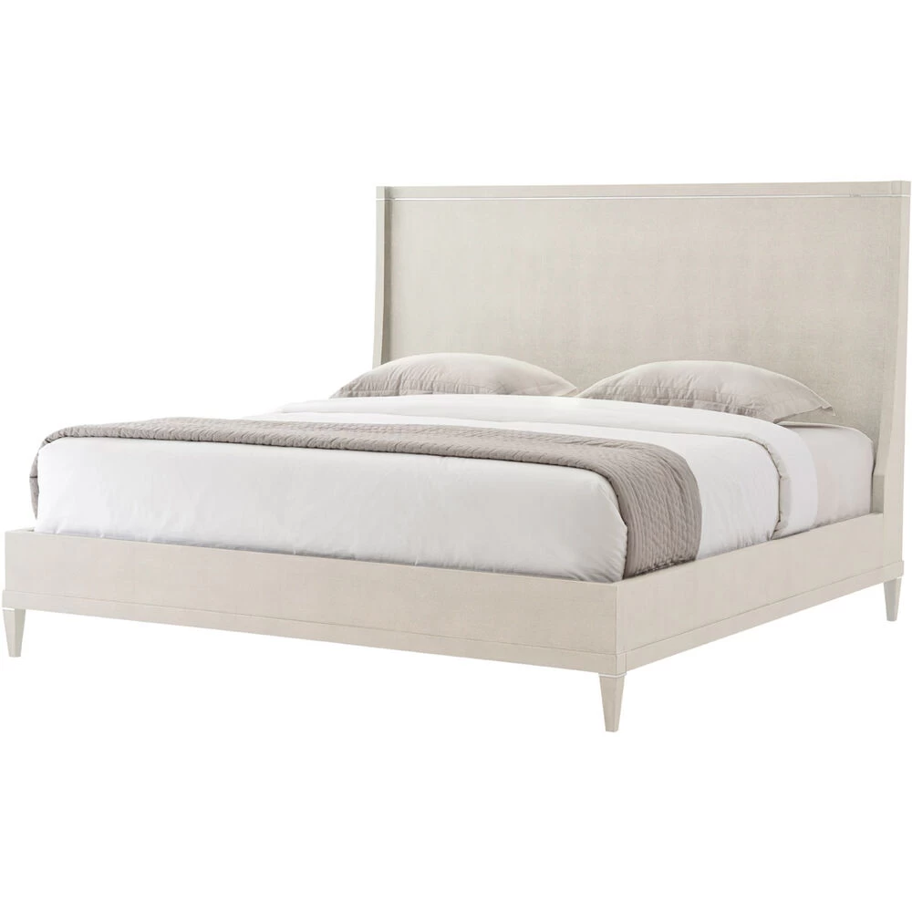 US Queen BedOvercast Finish Shagreen Embossed Leather WrappedHeadboard with Downswept WingsBrushed Nickel Molding DetailsStepped Rail Details with Square Tapering Legs with Molding Accents