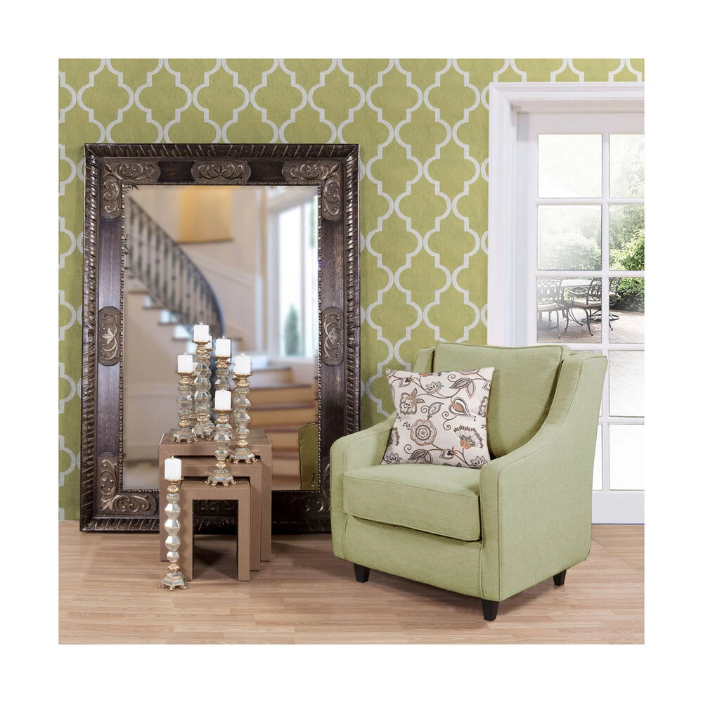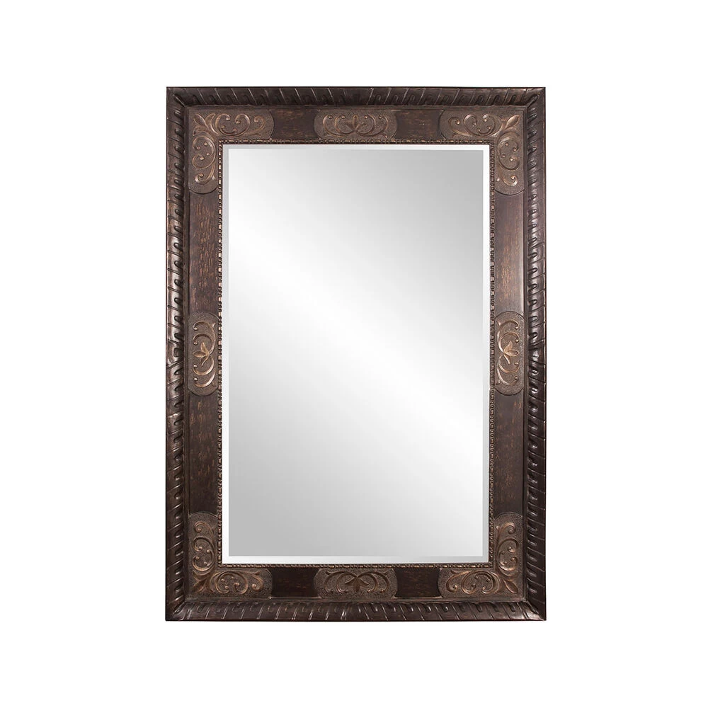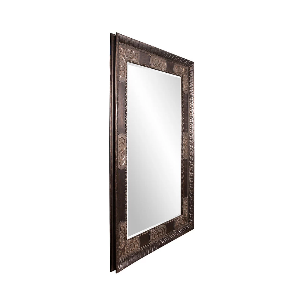 Our Tate Mirror has always been a customer favorite. Its large rectangular wood frame features a mottled bronze finish that is adorned with ornate, antique bronze scroll overlays. It is a perfect focal point for an entryway, bathroom, bedroom or any room in your home. D-rings are affixed to the back of the mirror so it is ready to hang right out of the box! The mirrored glass is beveled adding to its style and beauty. Also available in a smaller size. Make any room look instantly brighter and larger by adding a floor mirror.