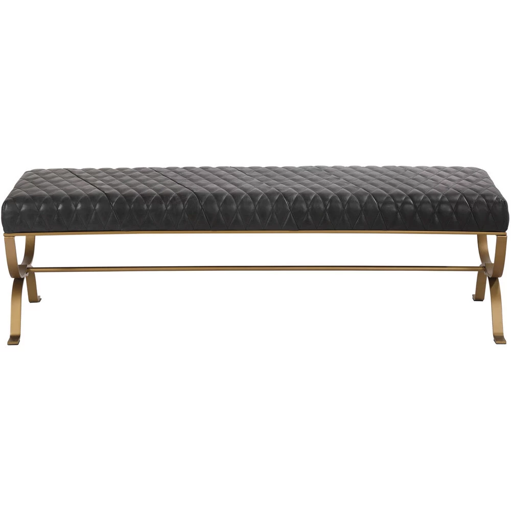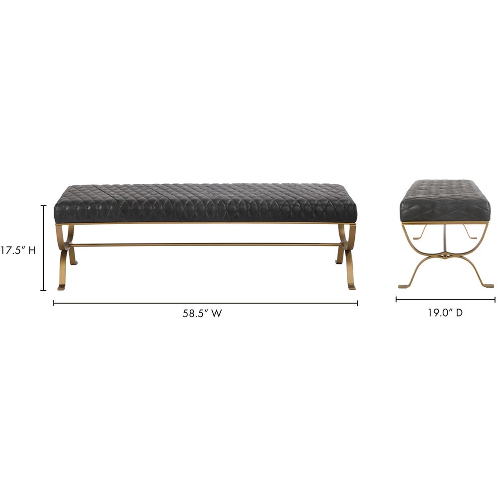 An antique style bench fit for the finest theatre. The Teatro bench presents smooth top-grain leather, foam filled seats, and matte iron legs for an elevated look. This bench quilted style makes a great impression of your contemporary modern home.