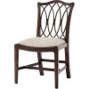 A mahogany armchair, the overscroll padded back and seat between open scroll arms and above floral capital carved and panelled sabre legs. Inspired by a 19th century French original.
