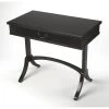 A flame veneered and brass mounted bureau plat desk, with a leather inset writing surface and three frieze drawers, on turned legs.
