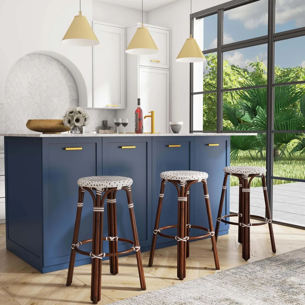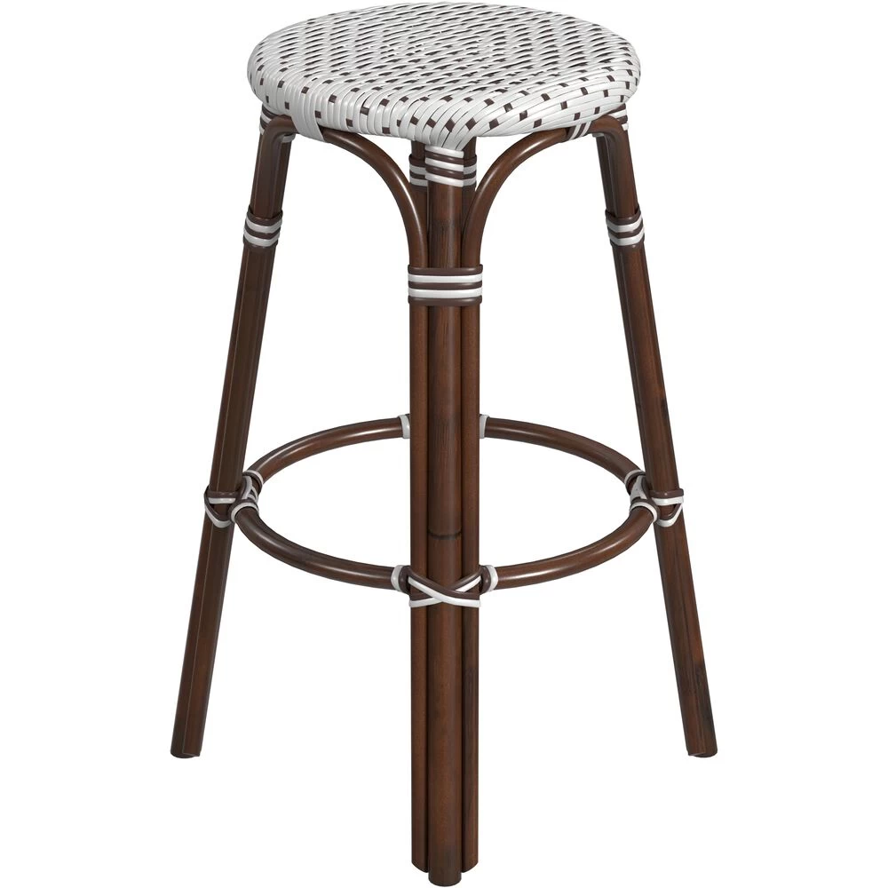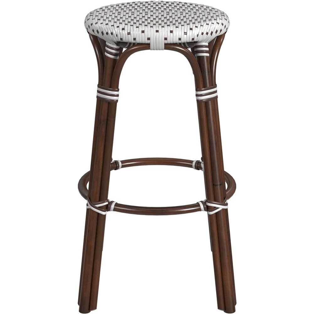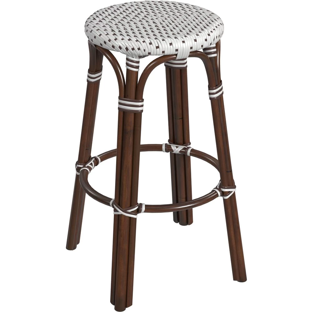 Butler Specialty Company Tobias Round Rattan 30″ Bar Stool, White and Brown Dot