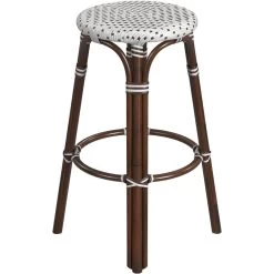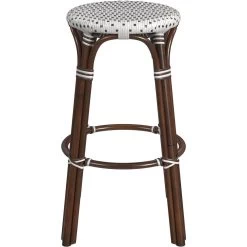 Tobias Round Rattan 30″ Bar Stool in White and Brown Dot